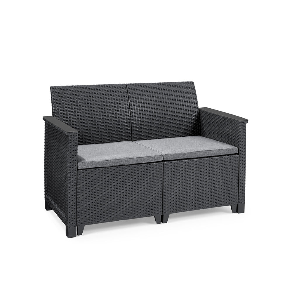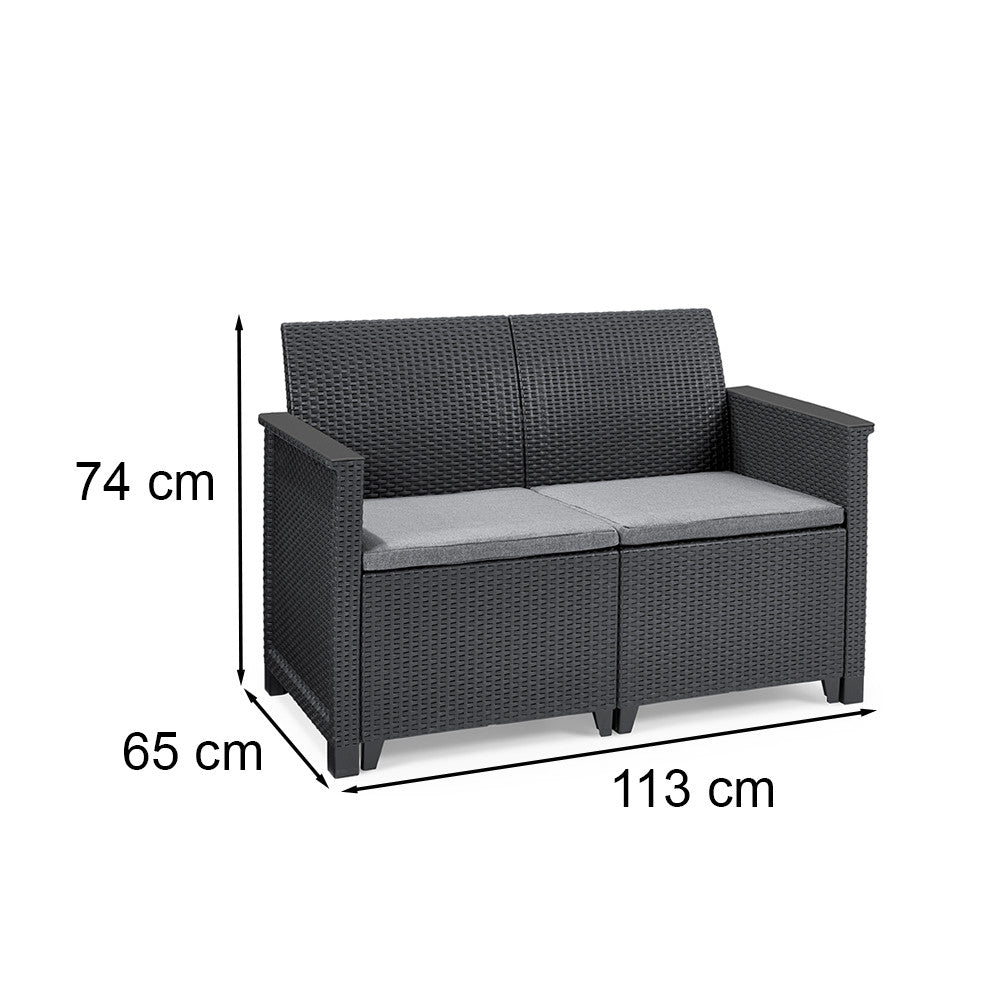 Elodie 2 személyes műrattan kerti kanapé grafit színben