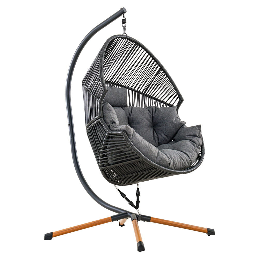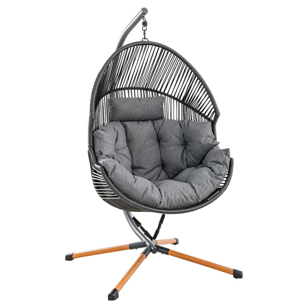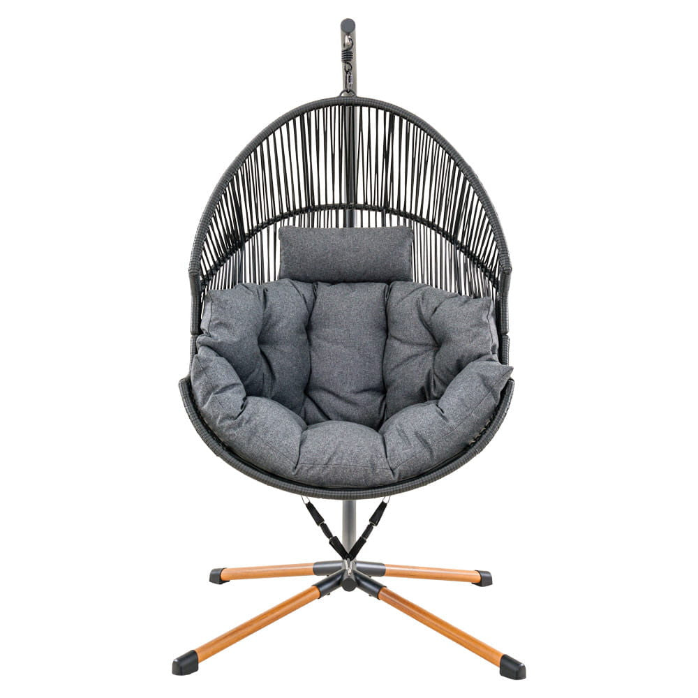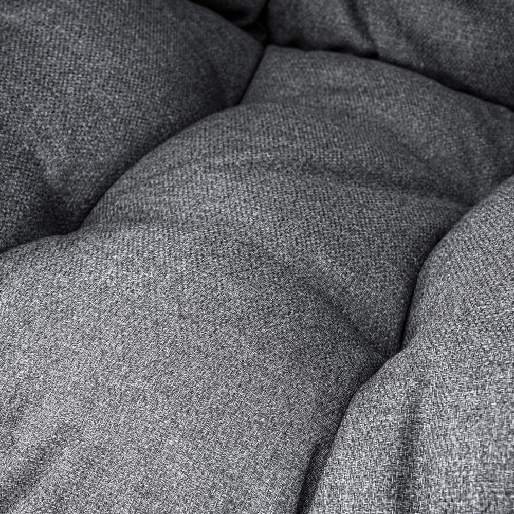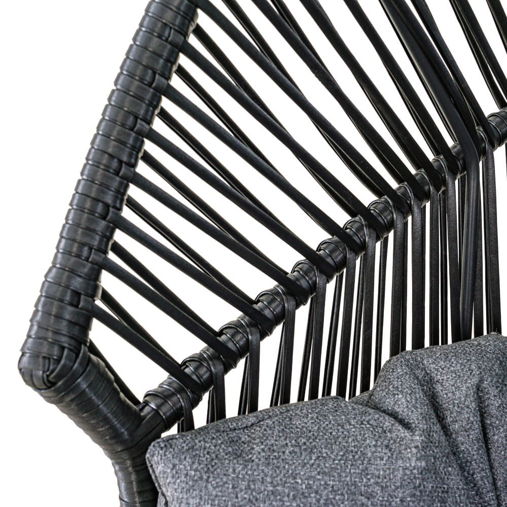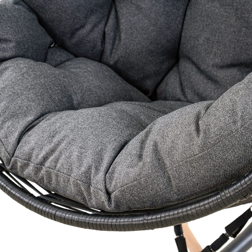 A függőfotel párnái sodrott poliészterből készültek, így rendkívül ellenállóak a nedvességgel és az UV sugárzással szemben. Ez egy olyan anyag, amely nem gyűrődik túlzottan. Ennek köszönhetően a termék hosszú ideig megőrzi esztétikus megjelenését, a használó pedig az időjárási viszonyoktól függetlenül élvezheti a kényelmet.