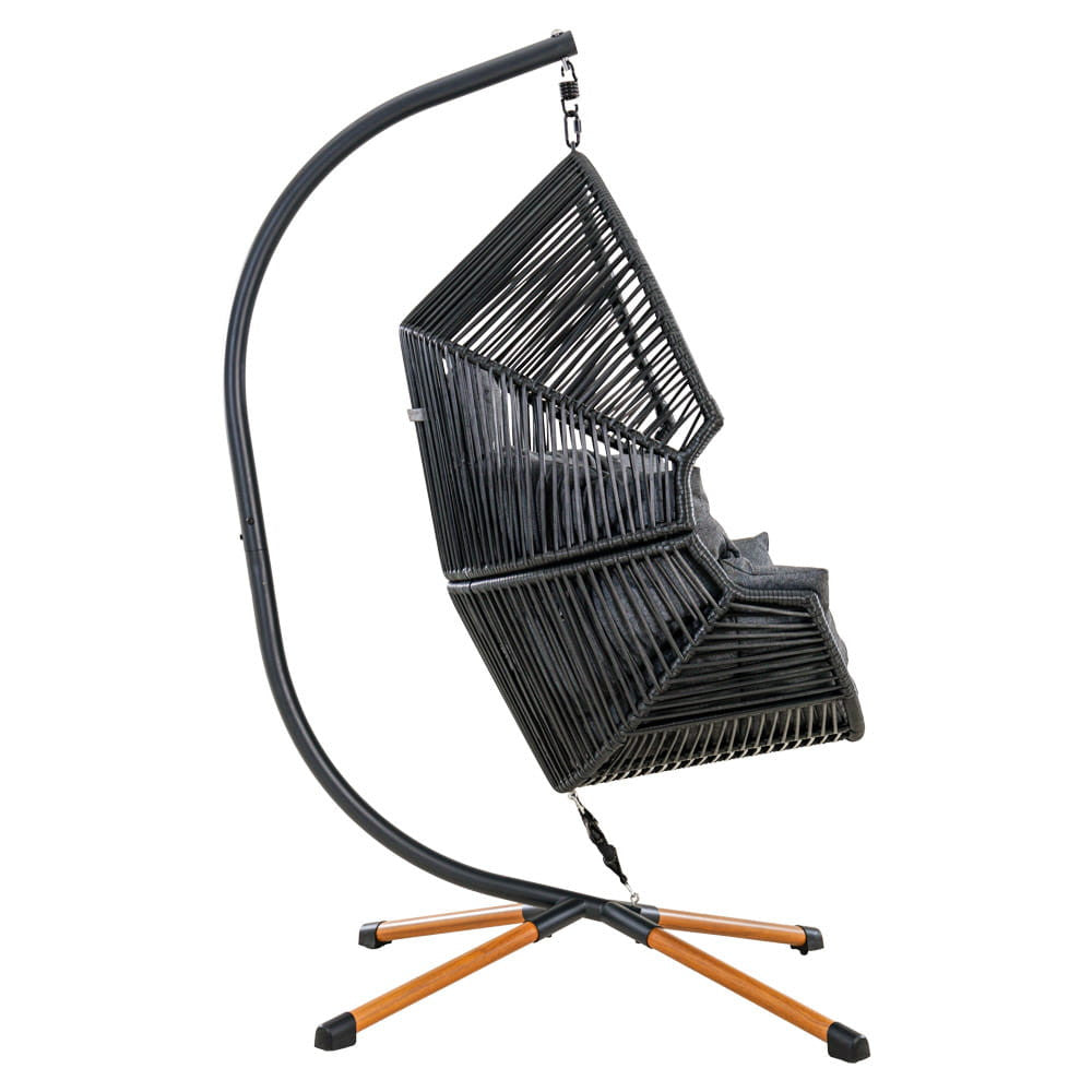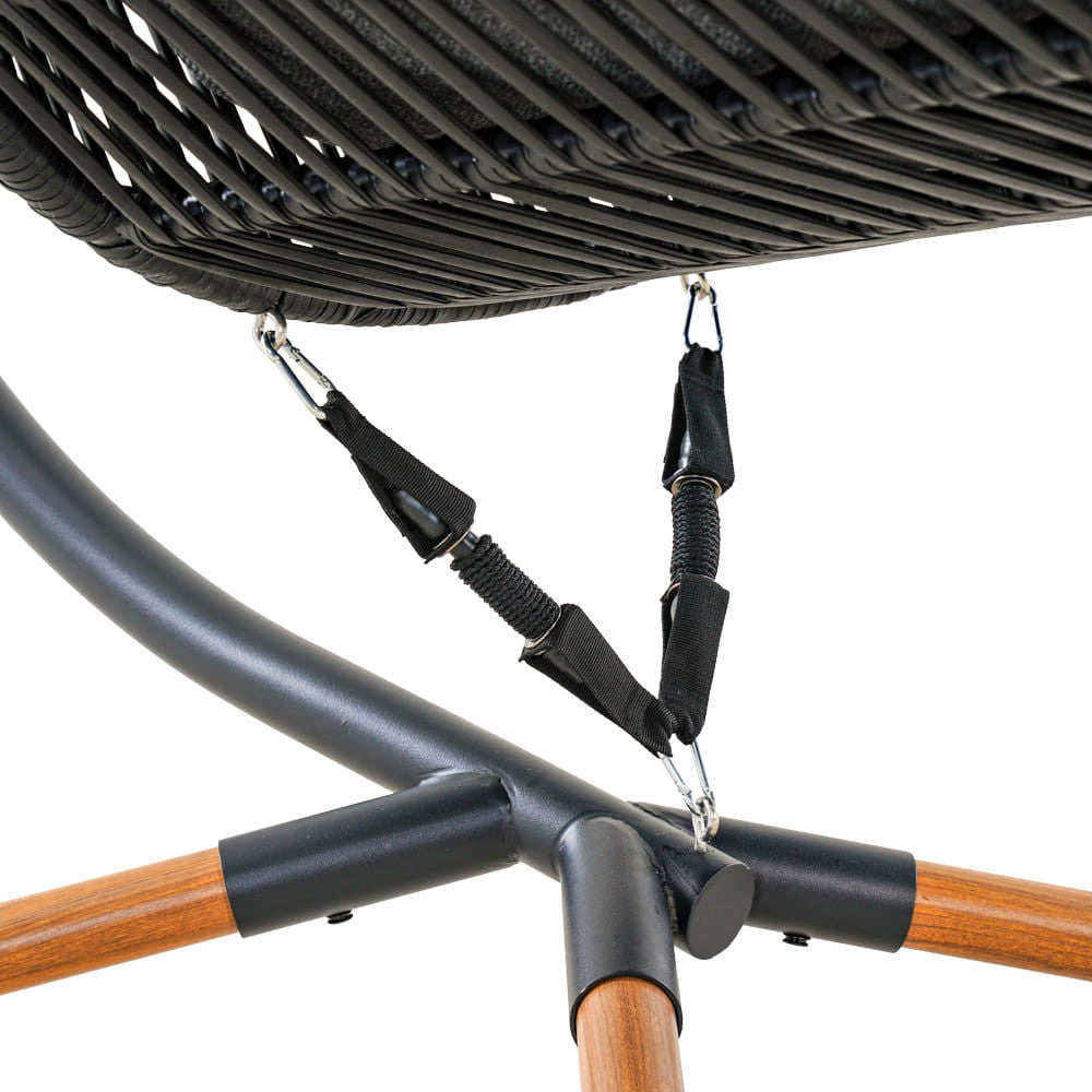 A Holand függőszék ülőfelülete polirattanból készült, mely nemcsak elegáns megjelenést, de kényelmet is biztosít a használat során. A kontúros formák alkalmazkodnak a test alakjához, lehetővé téve az ellazulást bármilyen helyzetben. A polirattan a kedvezőtlen időjárási viszonyoknak is jobban ellenáll, így a bútor tökéletes kültéri használatra.
