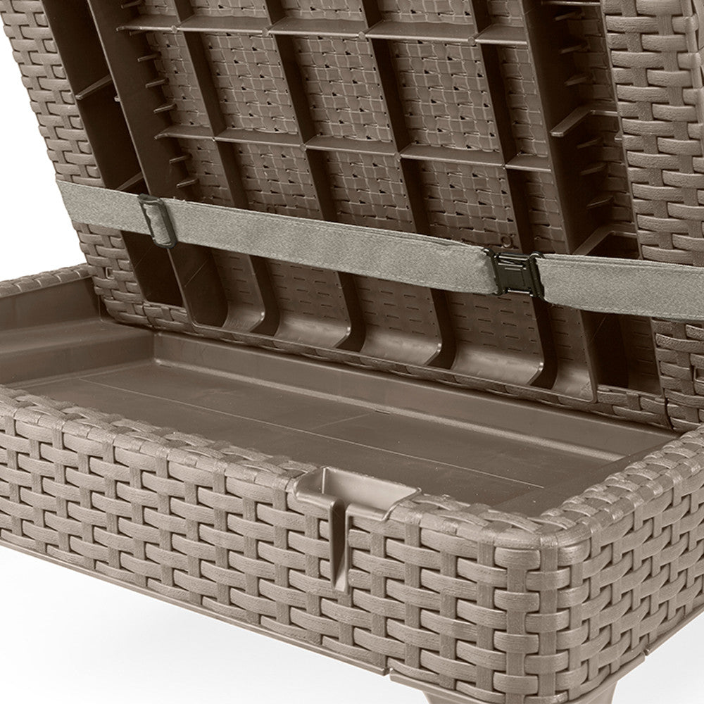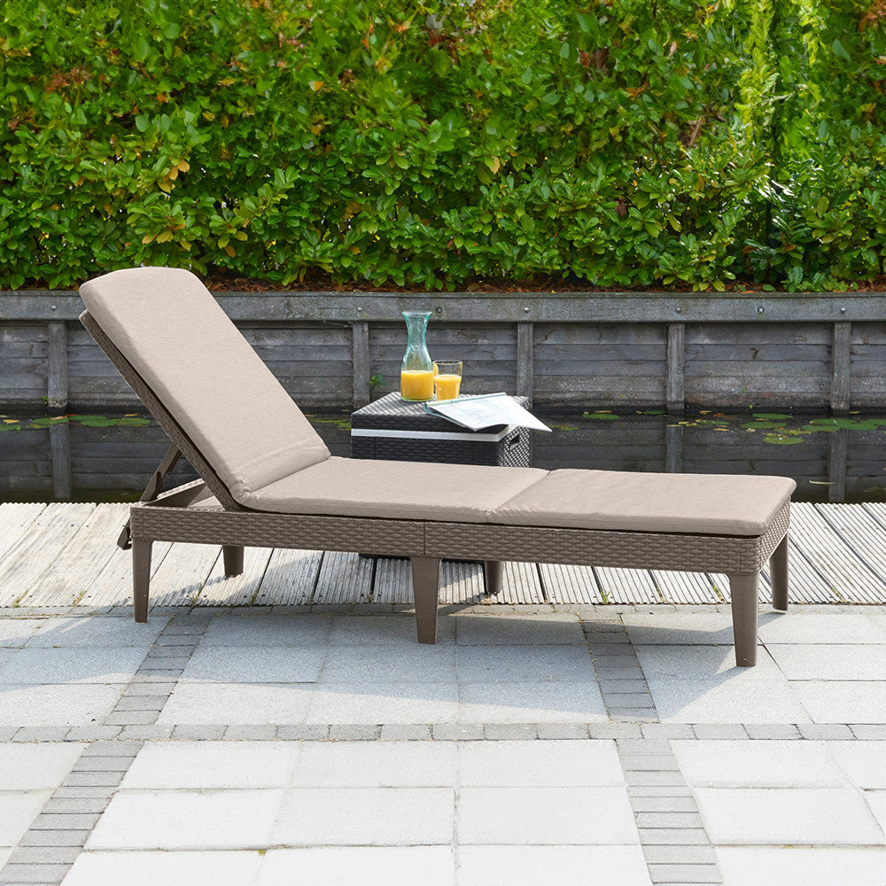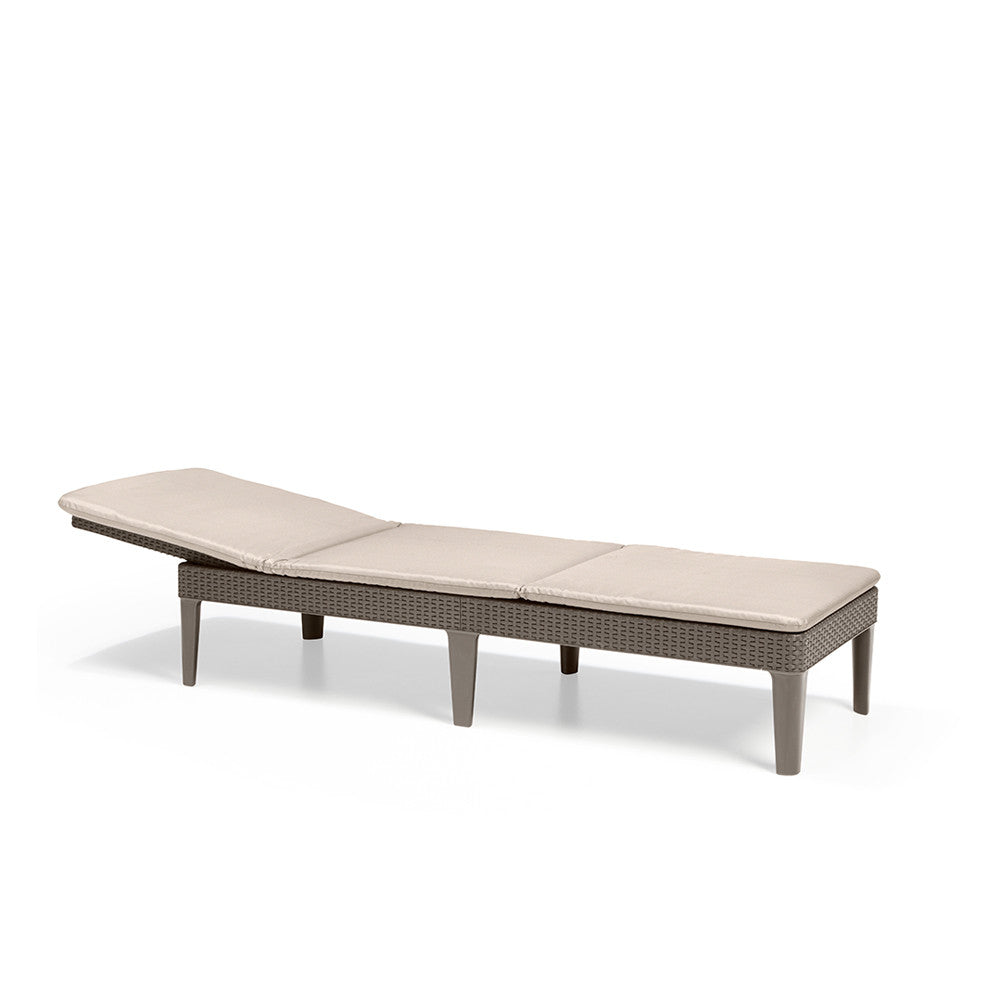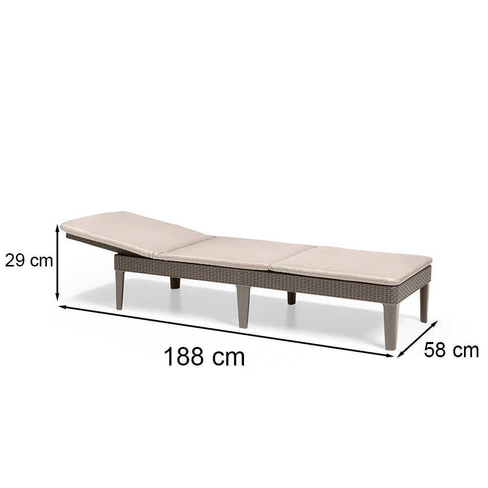 Funkcionális Jaipur nyugágy természetes rattanra emlékeztető felületkialakítással. Átgondolt szerkezetének köszönhetően a nyugágy összecsukható kis kézreálló poggyász méreteire. 4 pozíciós szabályozható háttámla tovább növeli a használati kényelmet. A puha törlőkendővel és mosószeres vízzel tisztítható. Ellenáll a kedvezőtlen időjárási tényezők hatásának és az UV sugárzásnak.