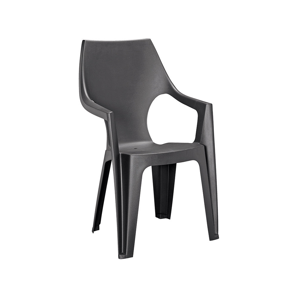 A székek tartós, színtartó műanyagból készültek, magas támlával és ergonomikus kialakítással. Az enyhén lekerekített háttámla és kartámaszok hosszabb ülések alatt is kényelmet biztosítanak, míg a rakatolható kialakítás helytakarékossá teszi a tárolást.