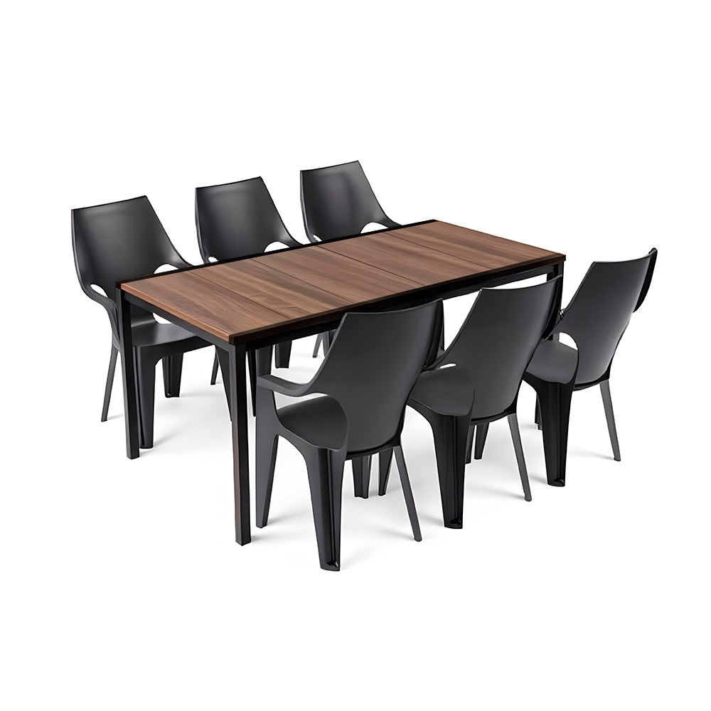 A meleg dió asztallap és a hűvös grafit székek elegáns, kortárs megjelenést adnak. Legyen a teraszod skandináv, mediterrán vagy ipari hangulatú, a Parker Large kifinomult középponttá válik.