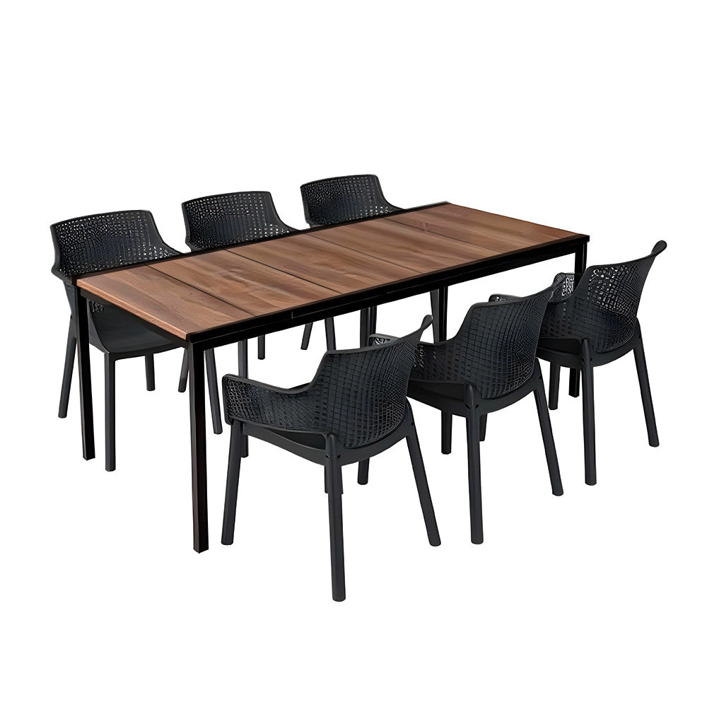 A meleg dió tónusú asztallap és a mély grafit székek elegáns, kortárs hangulatot teremtenek. Legyen a teraszod skandináv, mediterrán vagy ipari stílusú, a Romen Large garnitúra központi elemmé válik, ami stílust és harmóniát kölcsönöz a kültéri térnek.