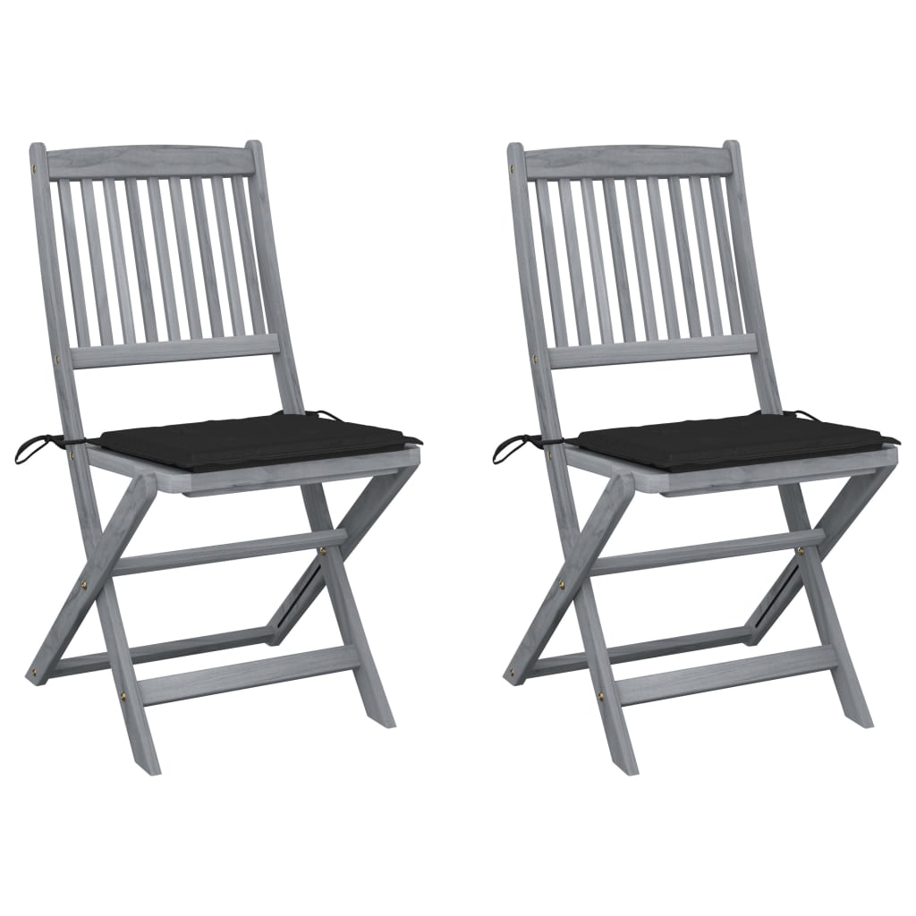 vidaXL 2 db összecsukható tömör akácfa kültéri szék párnával