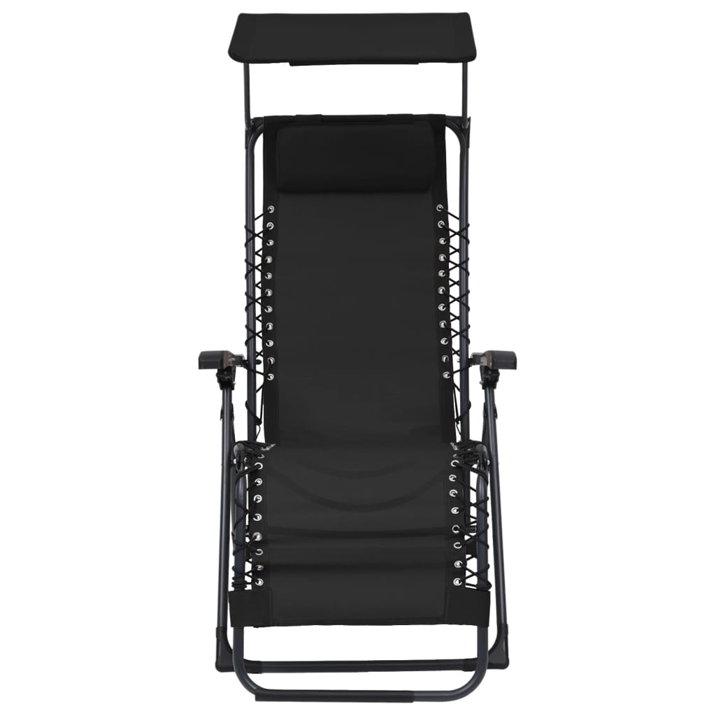 A kerti szék masszív acélvázzal és könnyen tisztítható, időjárásálló textilén ülőfelülettel és háttámlával rendelkezik, így hosszú élettartamú. A párnázott fejtámla puha és kényelmes. A napellenzős tervezésnek köszönhetően ez a nyugágy hűvös árnyékot biztosít a forró napsütésben. Továbbá a szék könnyű szerkezete miatt könnyen mozgatható, és a helytakarékosság érdekében összecsukható amikor nincs használatban.