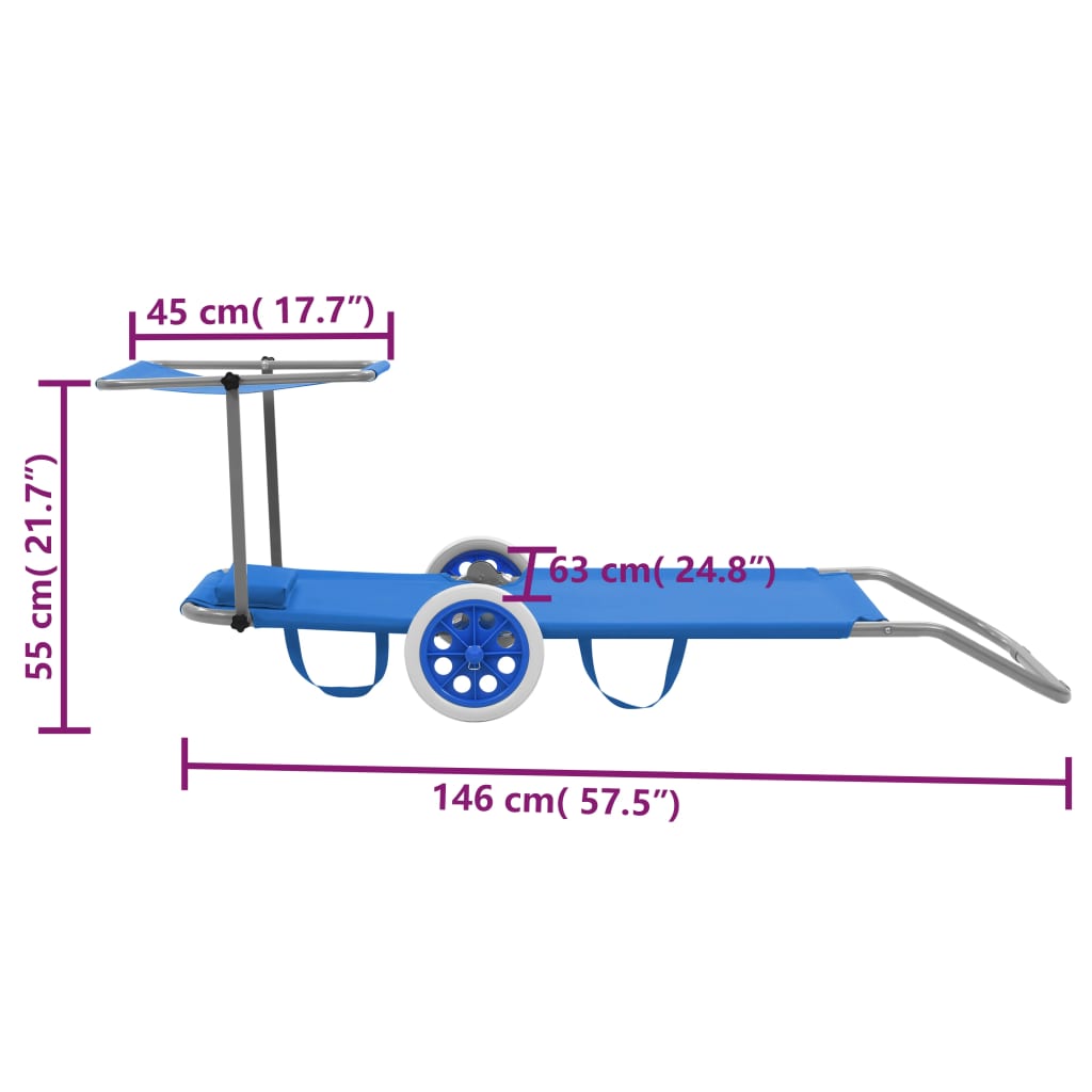 vidaXL kék acél összecsukható napozóágy napellenzővel és kerékkel