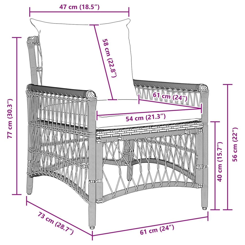 vidaXL Kerti Szék Fekete 60 x 70 x 78cm polirattan