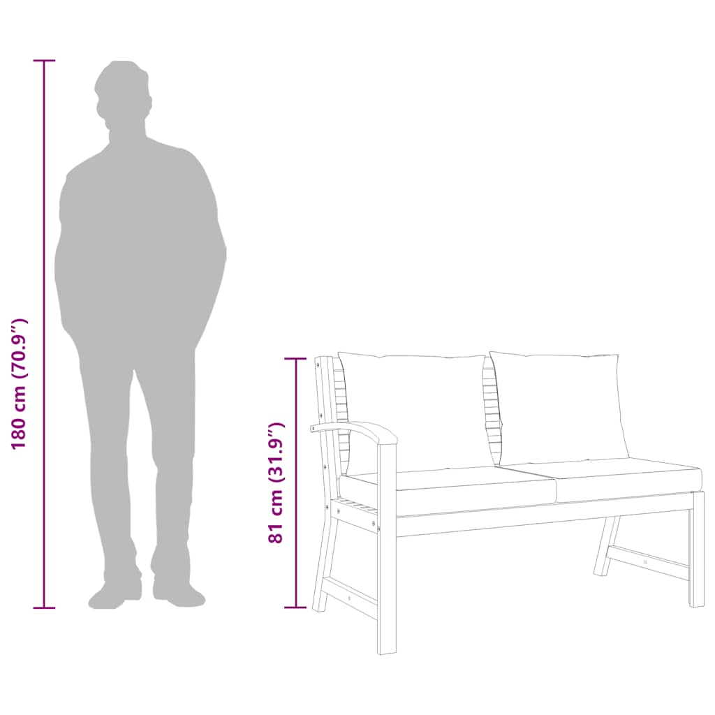 vidaXL tömör akácfa kerti pad sötétszürke párnával 114,5 cm