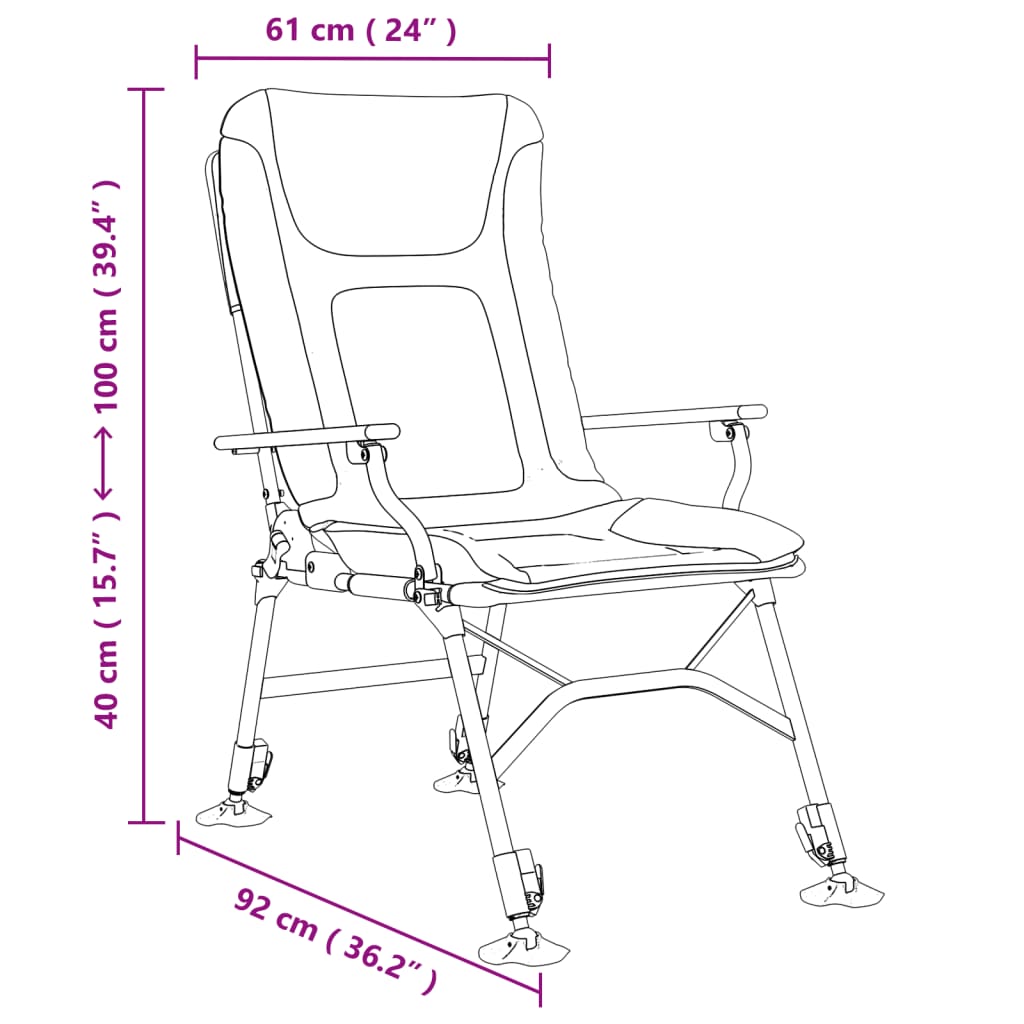 - Praktikus kialakítás: A horgászszék állítható, sárgyűjtőkkel ellátott lábakkal rendelkezik, biztosítva a kényelmes használatot még egyenetlen terepen is, és megakadályozva, hogy puha talajba süllyedjenek.
