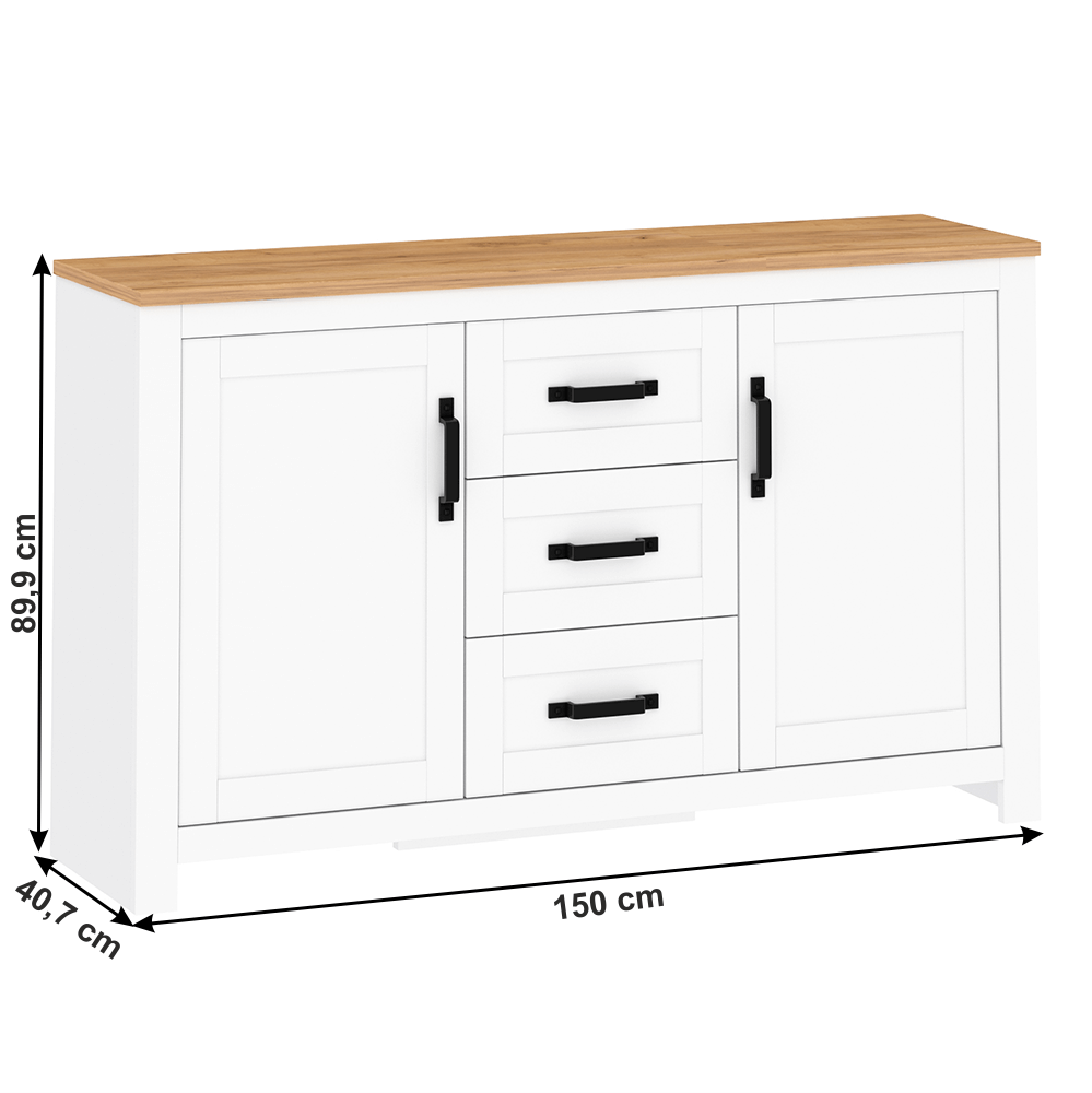 Komód, fehér alba/tölgy craft arany , LANZETTE E