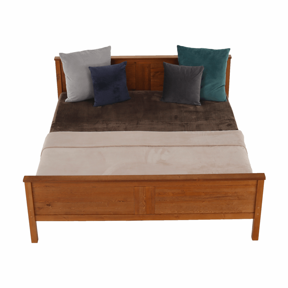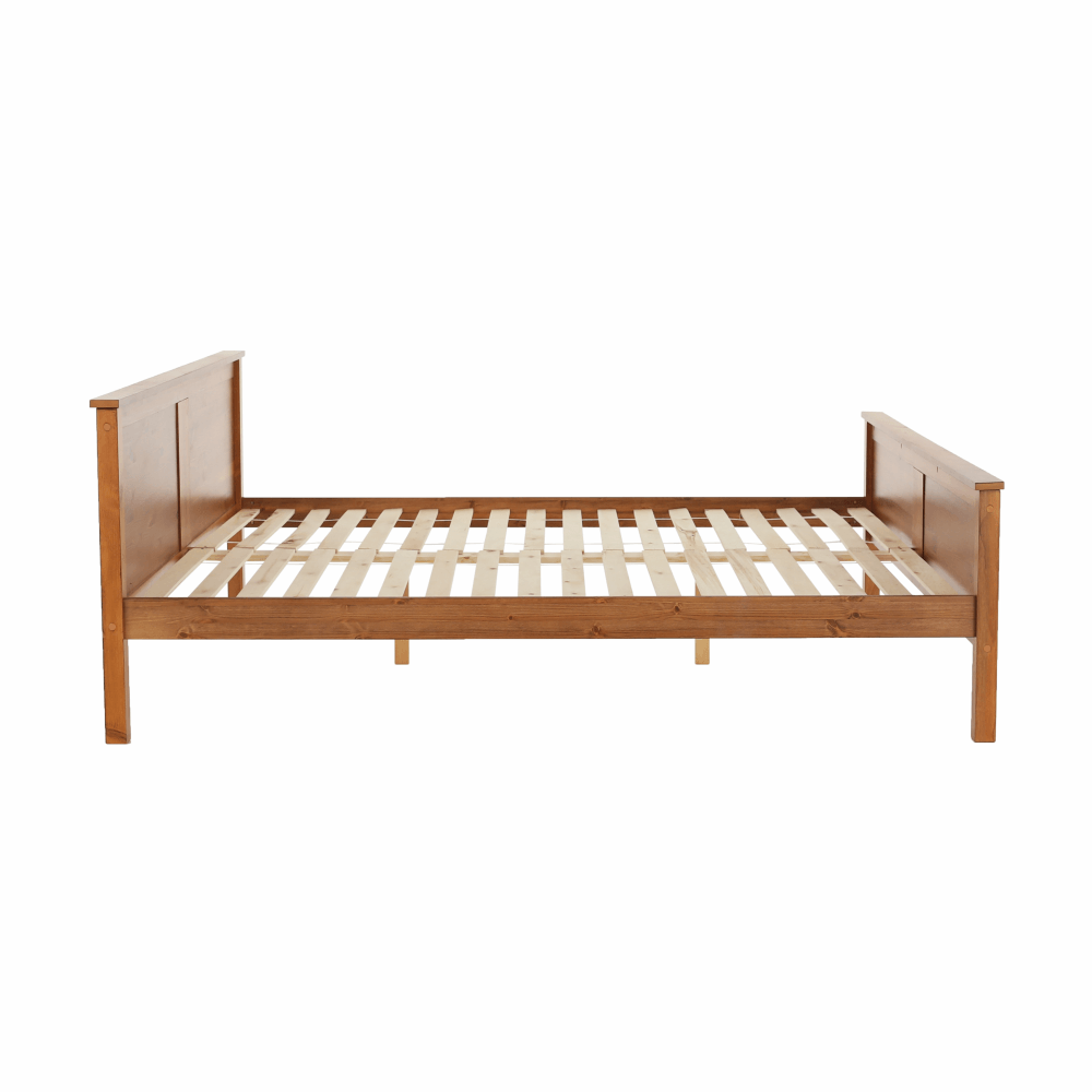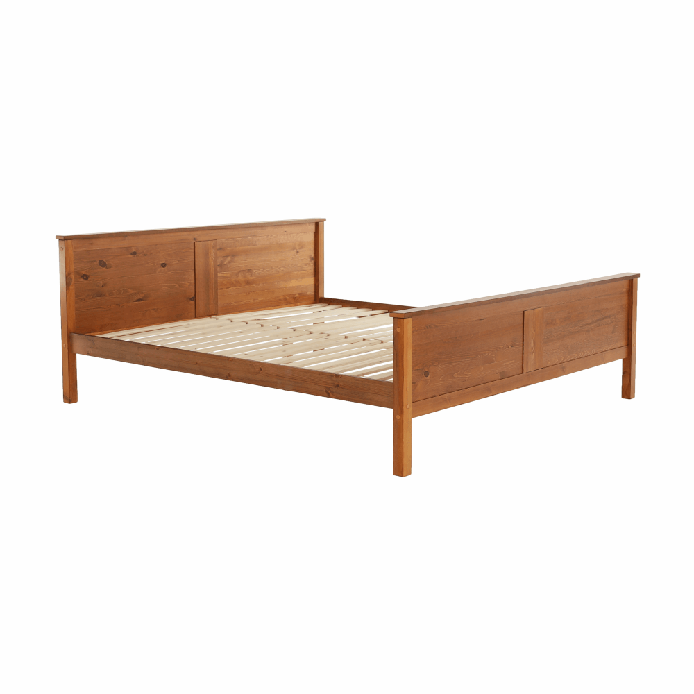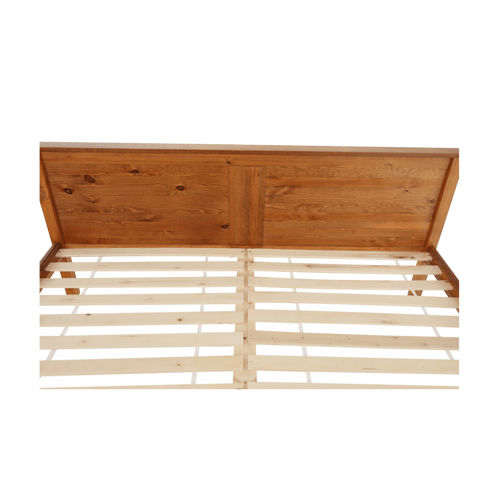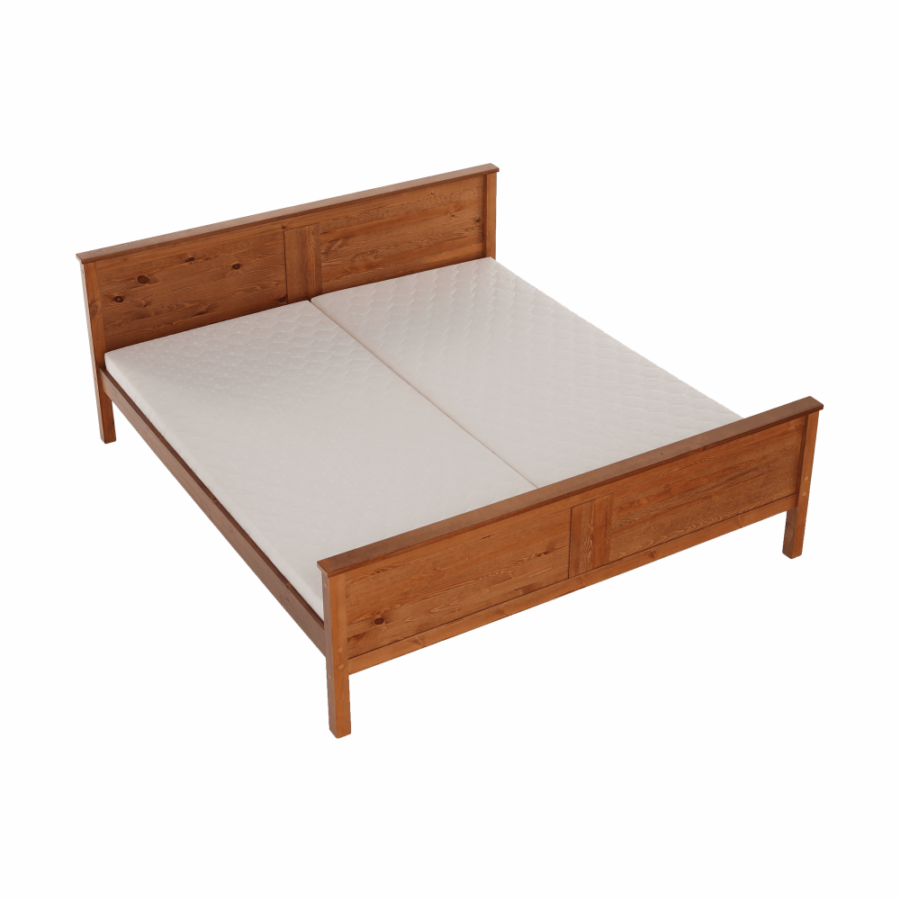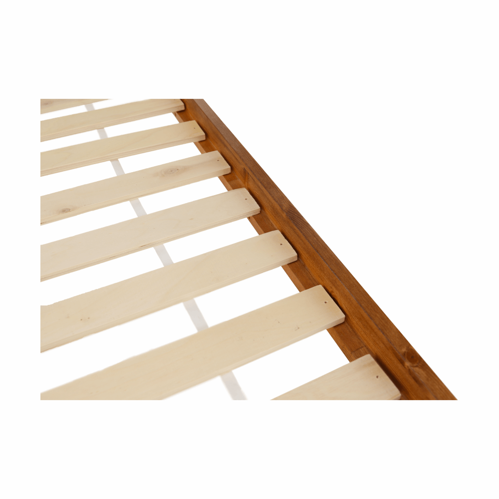 Ágy, lécezett ráccsal Provo Anyag: fenyőfa/furnérlemez Szín: tölgy Méretek(SzéxMéxMa): 190x213x82 cm Fekvőfelület mérete: 180x200 cm Teherbírás ágyonként: 90 kg Szétszerelve szállítva hengerelt ágyráccsal, matrac nélkül.