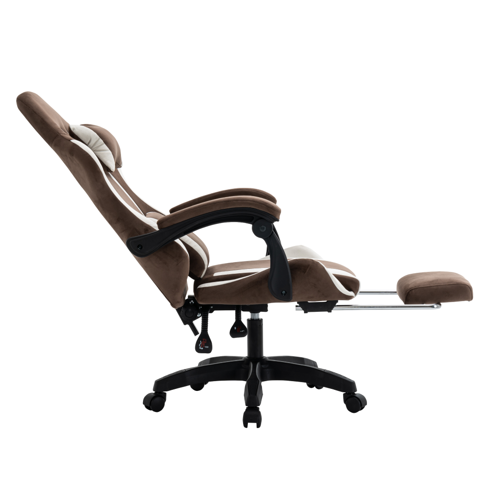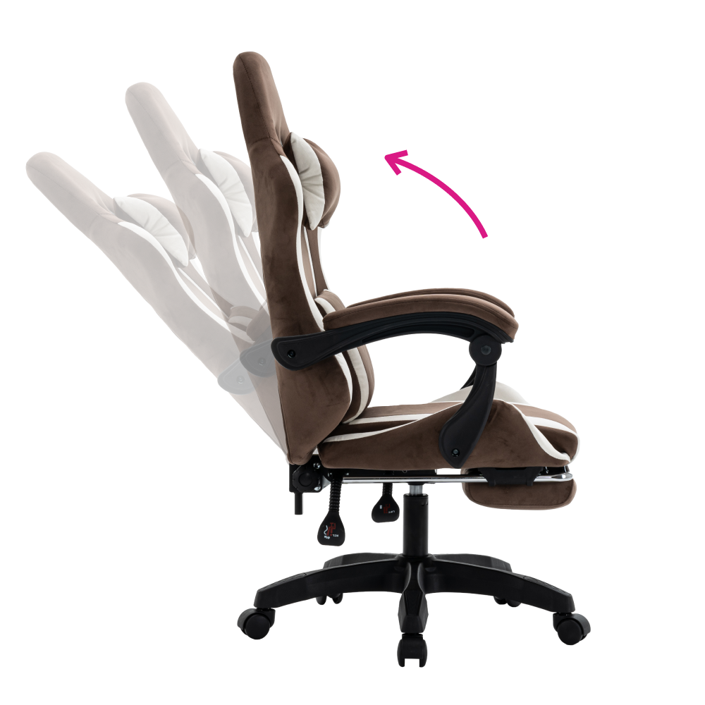 A HOSPO irodai vagy gamer szék ideális választás mindazok számára, akik a kényelmet, stílust és funkcionalitást egyetlen bútordarabban keresik. Ergonomikus kialakítása, amelyet gamer modellek inspiráltak, biztosítja a maximális megtámasztást hosszú munka- vagy játékmenetek során. Az állítható fejtámla és a dönthető háttámla lehetővé teszi, hogy a széket teljes mértékben az igényeihez igazítsa. A párnázott kartámaszok fokozzák a kényelmet, míg a kihúzható lábtartó kellemes pihenést nyújt a lábaknak. Az univerzális kerekek révén könnyedén mozoghat puha és kemény padlón egyaránt. A stabilitást egy masszív műanyag ötágú lábcsillag biztosítja. Az elegáns barna és fehér szövet kombinációja modern, mégis otthonos és stílusos megjelenést kölcsönöz, így a HOSPO tökéletes kiegészítője lesz bármely irodának, otthoni dolgozósaroknak vagy gamer térnek.
