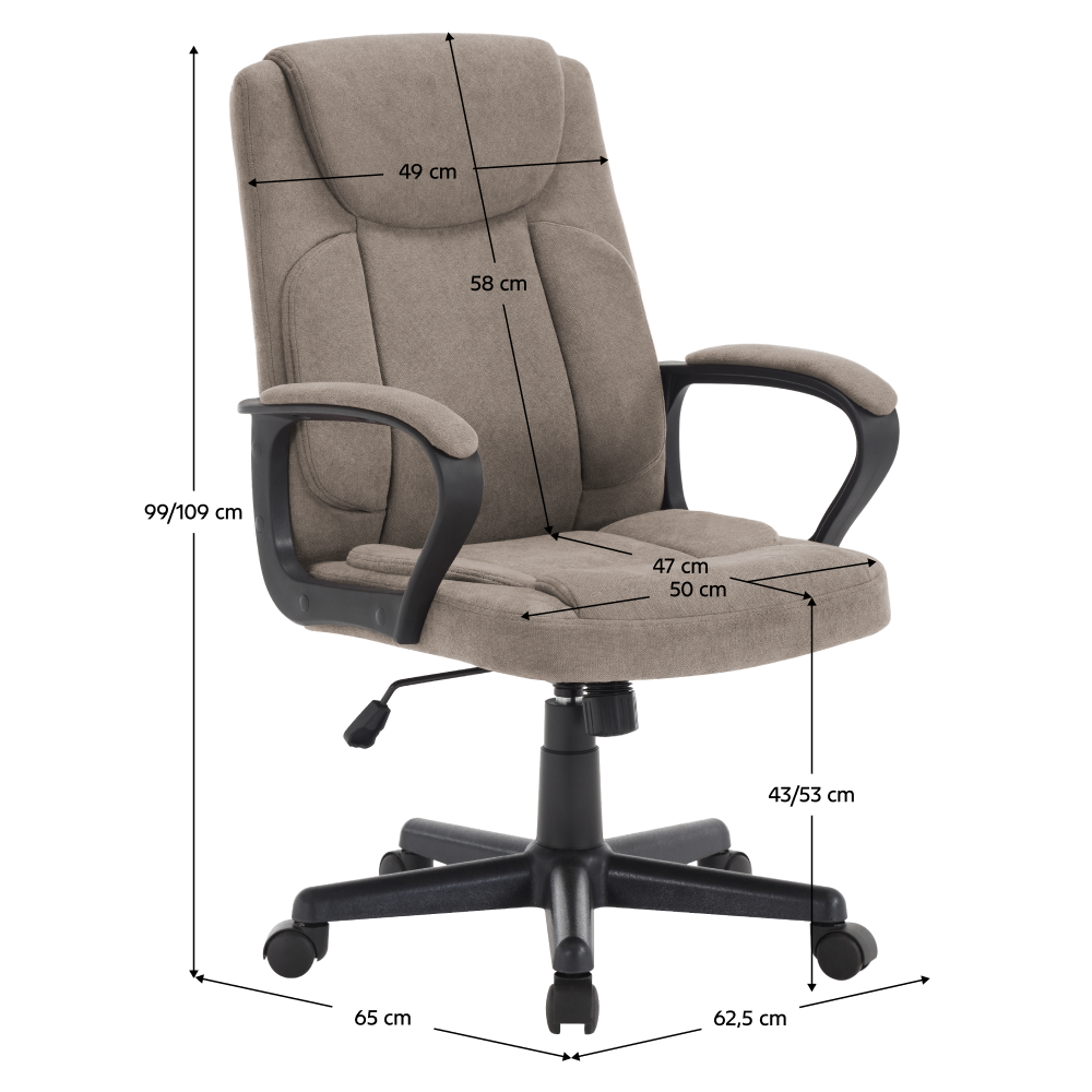 Az elegáns és kényelmes ULGER irodai szék párnázott kartámaszokkal ideális választás a hosszú órákon át tartó irodai vagy otthoni munkához. A barna szövetkárpit kifinomult megjelenést kölcsönöz a széknek, míg a fekete műanyag lábazat a stabilitást és a tartósságot biztosítja a mindennapi használat során. A hosszan tartó ülés kényelmét és a megfelelő tartást a praktikus ringató mechanizmus és az állítható ülésmagasság is növeli, lehetővé téve, hogy a széket igényei szerint személyre szabja. Az elegáns dizájn és a funkcionalitás ötvözete kényelmes ülést biztosít a teljes munkanap folyamán, és hozzájárul a kellemes munkahelyi légkör megteremtéséhez. Az ULGER irodai szék kiváló választás nemcsak irodákba, hanem otthoni dolgozósarkokba vagy tanulószobákba is.