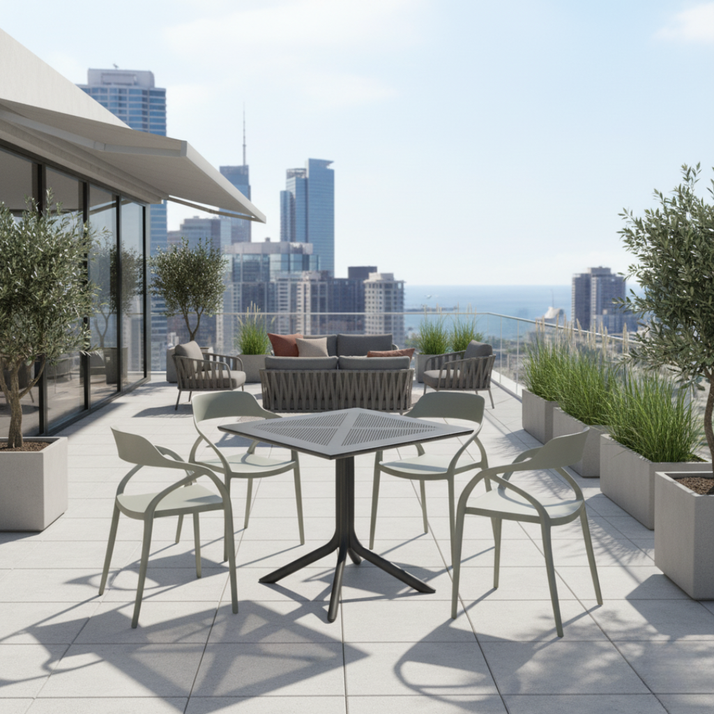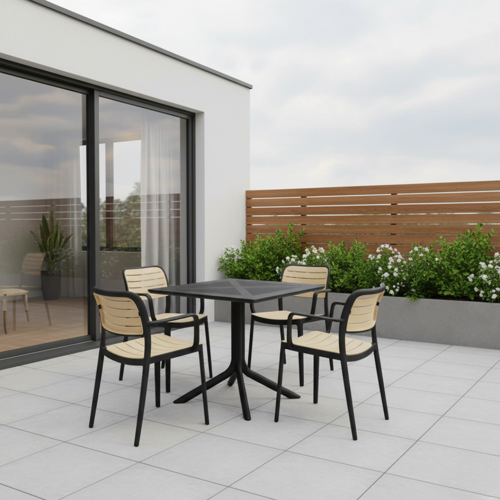 A minimalizmust és az egyszerűséget kedveli? Ilyen dizájnt és funkciót kínál Önnek a DENTON NEW asztal. Műanyagból készült fekete színben. Az asztal mellett kényelmesen elfér akár 4 fő. Az asztal praktikus és könnyen karbantartható. A belső tér domináns elemévé válhat étkezőasztal formájában, vagy kültéren is használható kerti asztalként. Biztos lehet benne, hogy a DENTON NEW asztal pont az, amire szüksége van.
