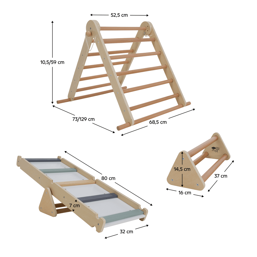 Pikler-háromszög méretei (SzxMéxMa): 68,5x73-129x10,5-59 cm