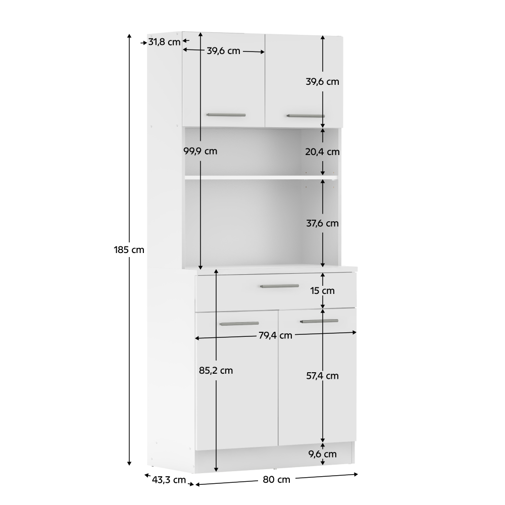 Méretek (SzxMéxMa): 80x43,3x185 cm
