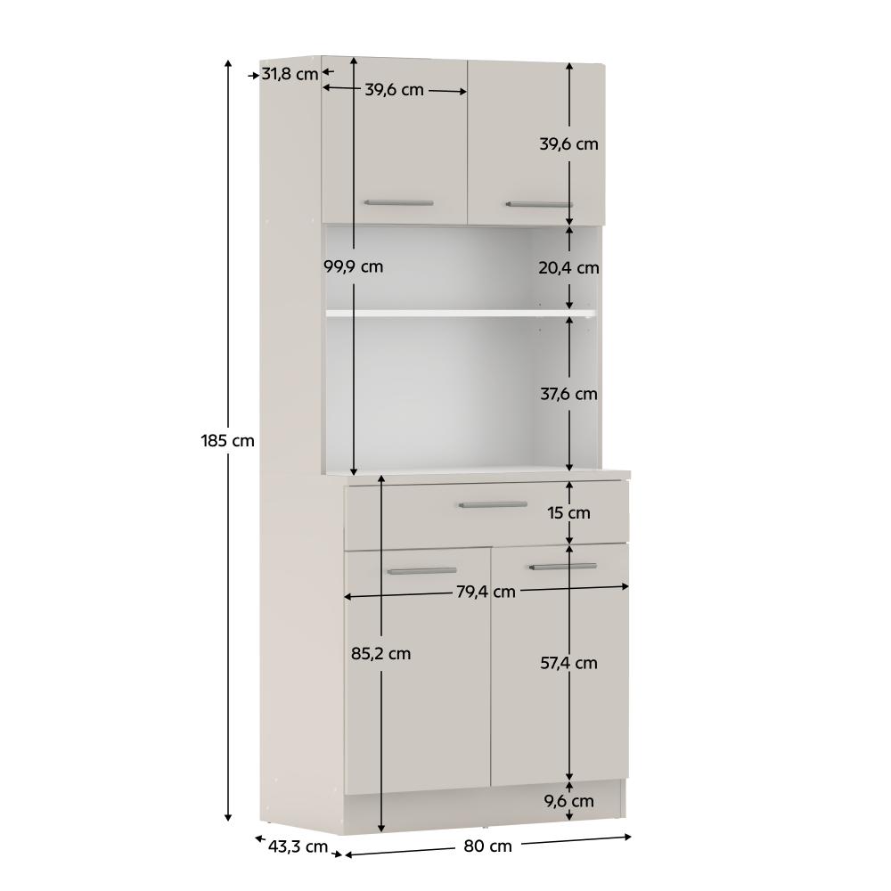 Méretek (SzxMéxMa): 80x43,3x185 cm