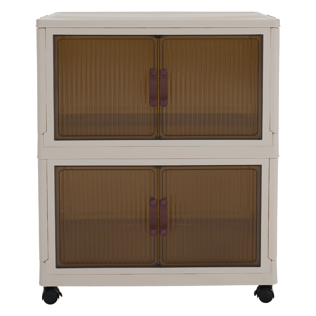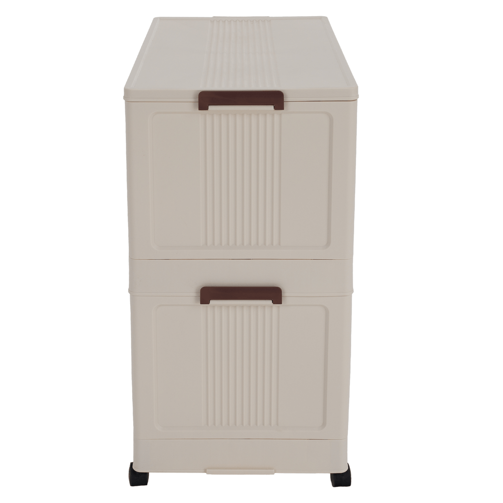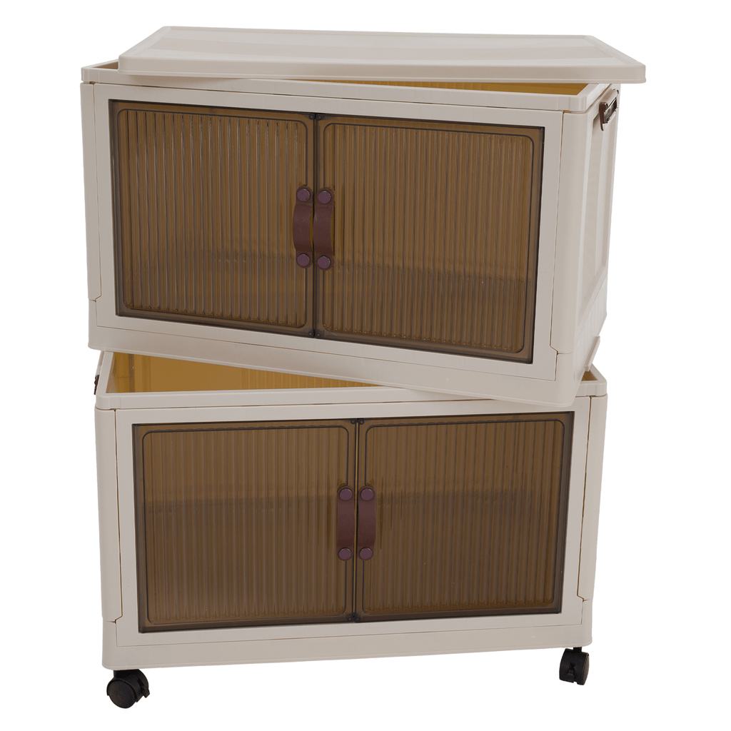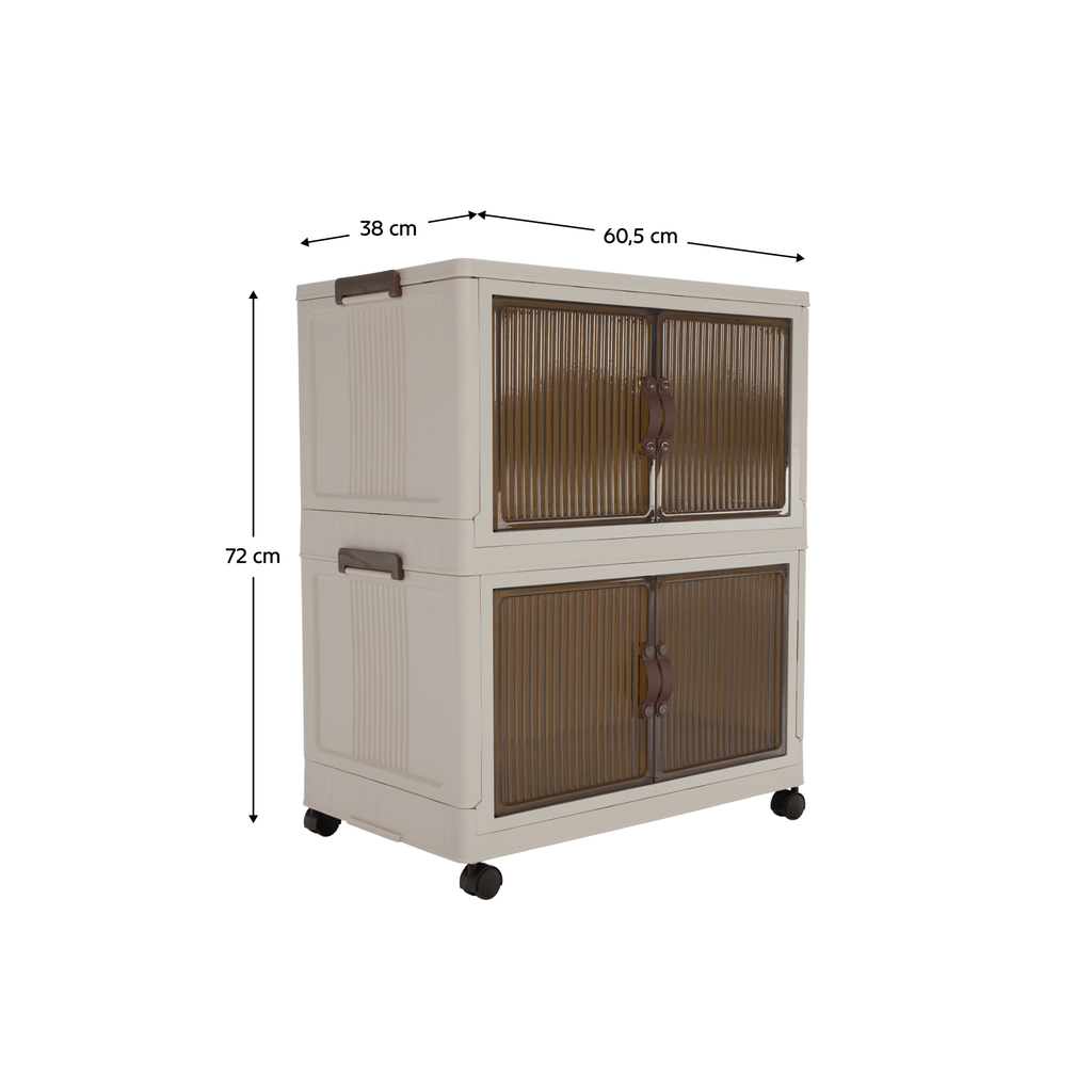 Anyag: műanyag Szín: fehér/barna Méretek (SzxMéxMa): 60,5x38x72 cm Barázdált ajtók 2x tárhely Teherbírás/polc: 10 kg Mozgatható Kerekeken Négy kerék Forgó Kerekek fékkel Modern dizájn Szétszerelve szállítva