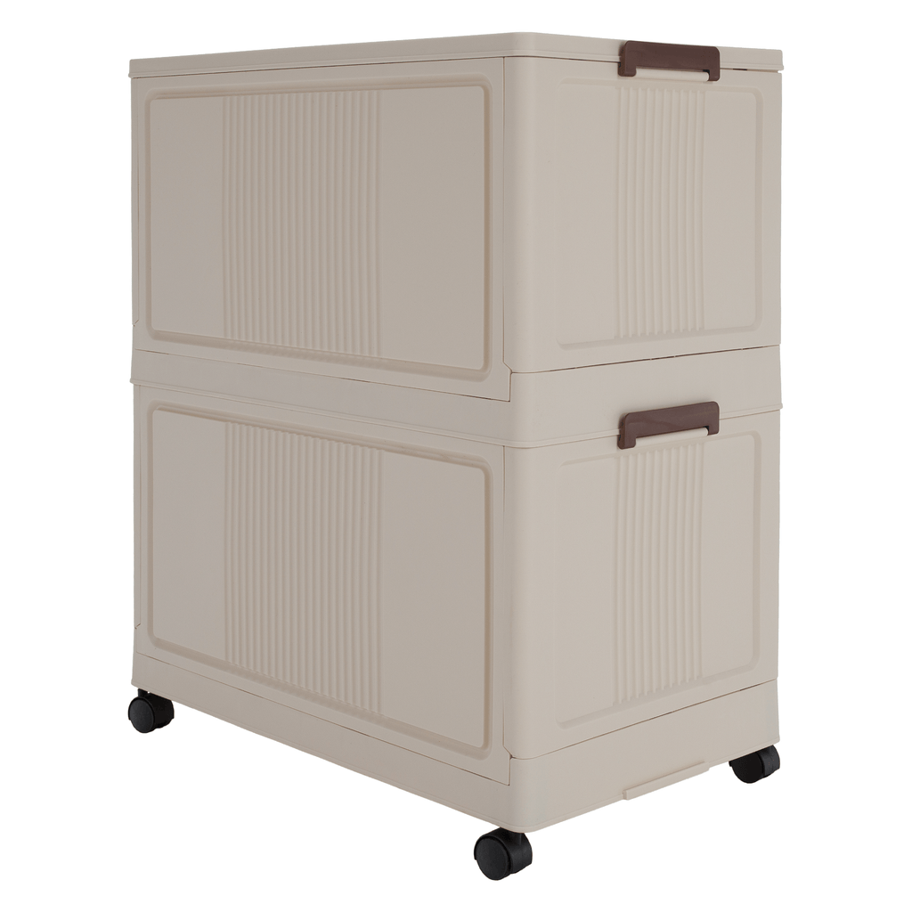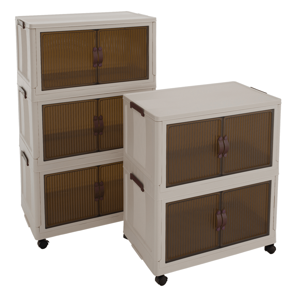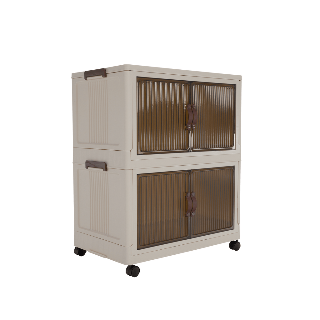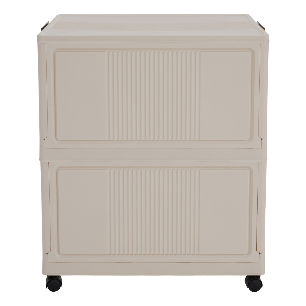 Anyag: műanyag Szín: fehér/barna Méretek (SzxMéxMa): 60,5x38x72 cm Barázdált ajtók 2x tárhely Teherbírás/polc: 10 kg Mozgatható Kerekeken Négy kerék Forgó Kerekek fékkel Modern dizájn Szétszerelve szállítva