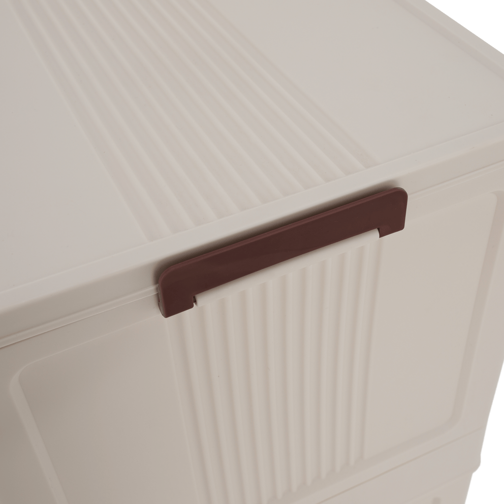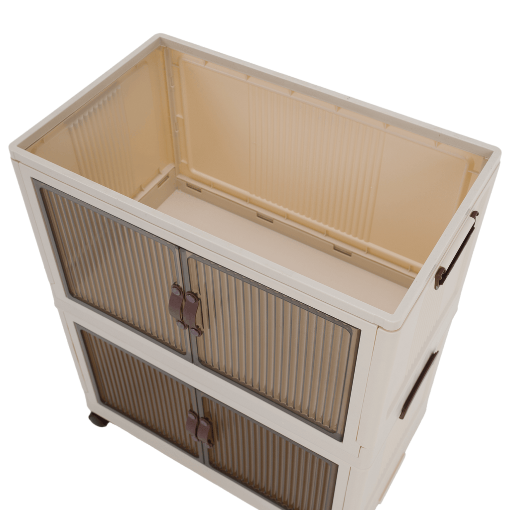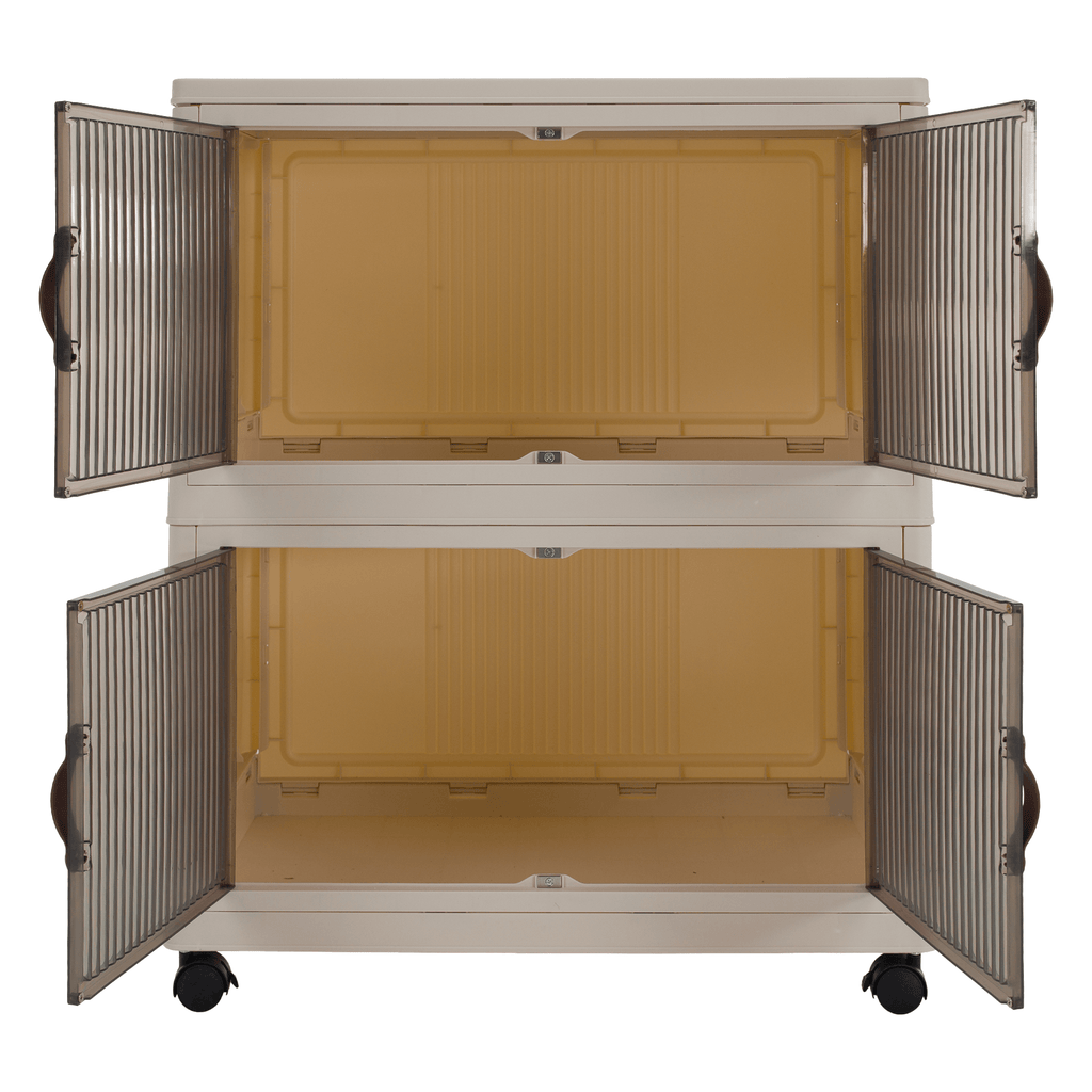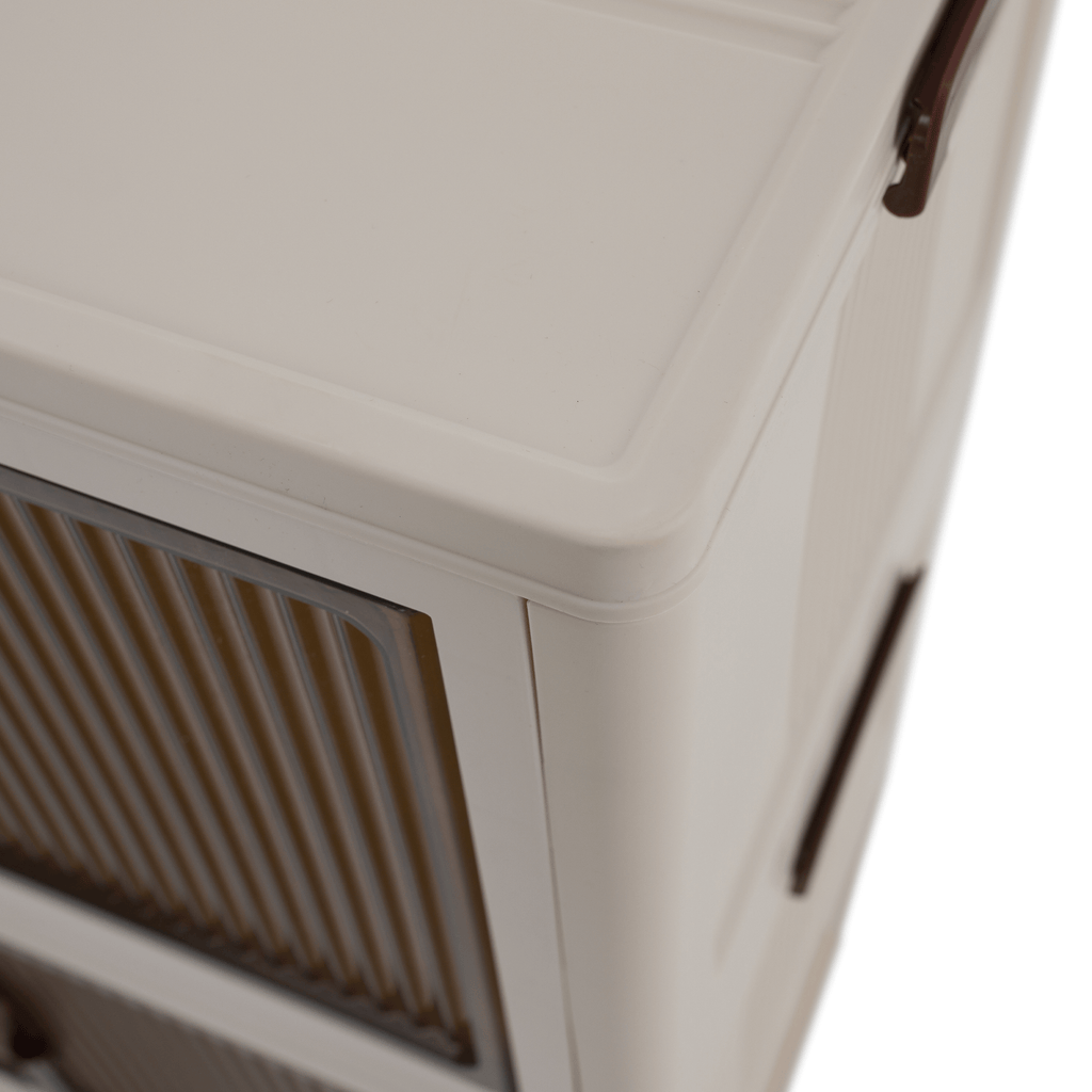 Anyag: műanyag Szín: fehér/barna Méretek (SzxMéxMa): 60,5x38x72 cm Barázdált ajtók 2x tárhely Teherbírás/polc: 10 kg Mozgatható Kerekeken Négy kerék Forgó Kerekek fékkel Modern dizájn Szétszerelve szállítva