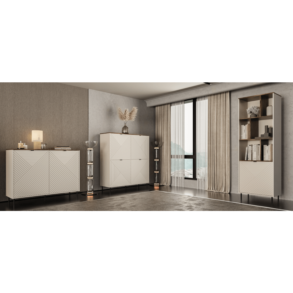 Tegye még szebbé nappaliját az EYCO elemes bútorkészlettel, amely nemcsak modern dizájnt, hanem maximális rugalmasságot is biztosít. Ez a bútor ideális mindenkinek, aki stílusos és praktikus tárolási megoldást keres. A bútortest laminált DTD-ből, az ajtók fóliázott MDF-ből készültek és természetesen ABS élekkel vannak ellátva, amelyek védik a bútor éleit a karcolásoktól, ill. mechanikai sérülésektől. A kasmír és a castello tölgy színkombinációja lágy és modern hatást kelt, míg a fekete fém lábak és a fekete fogantyúk kontrasztot és eleganciát biztosítanak a bútoroknak. Az EYCO szektorrendszer egyik legnagyobb előnye a változatossága. A bútorok egyenként rendelhetőek meg, ami lehetőséget biztosít arra, hogy saját igényei szerint állítsa össze a készletet.