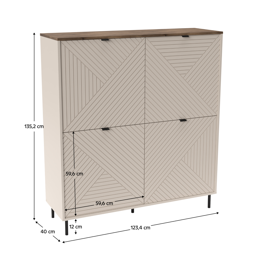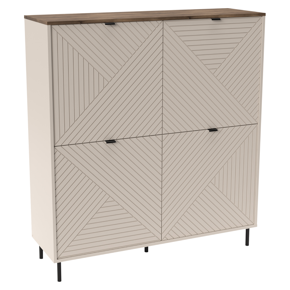A négyajtós EYCO 4D polcos szekrény négy szekrény formájában kínál tárhelyet. Az ajtók mögött polcok találhatók a ruhák vagy egyéb apróságok tárolására. Elegendő tárhelyet biztosít.