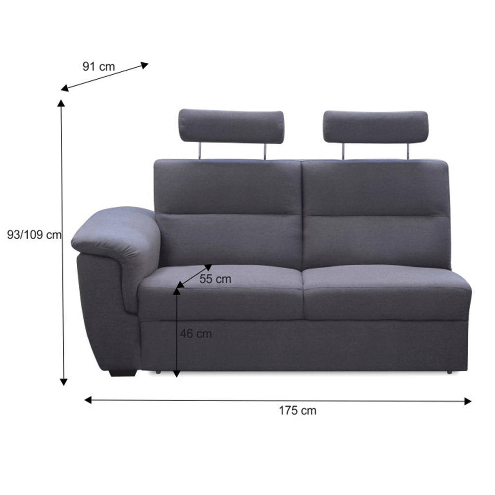 Méretek (SzéxMéxMa): 175x91x93/109 cm