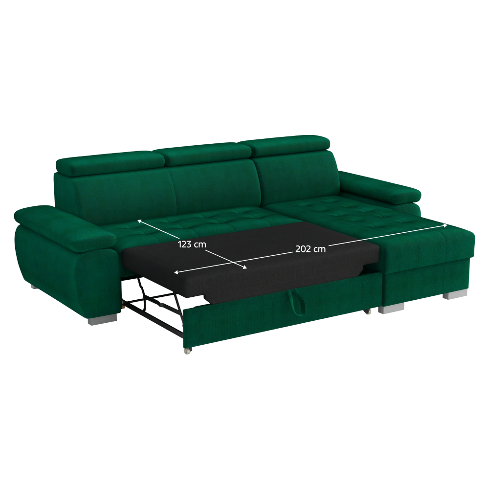 Sarok ülőgarnitúra, zöld, jobbos, SEMI ROH
