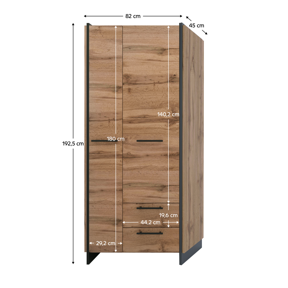 Méretek (SzxMéxMa): 82x45x192,5 cm