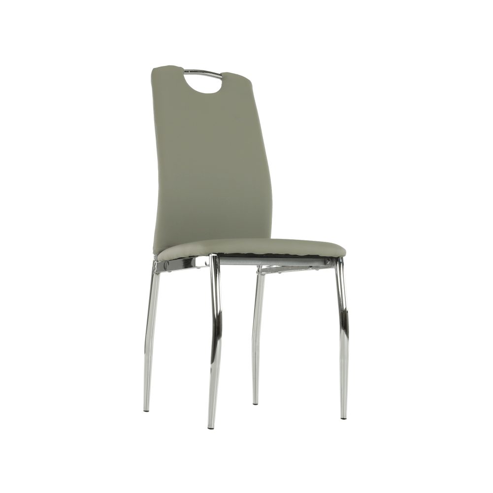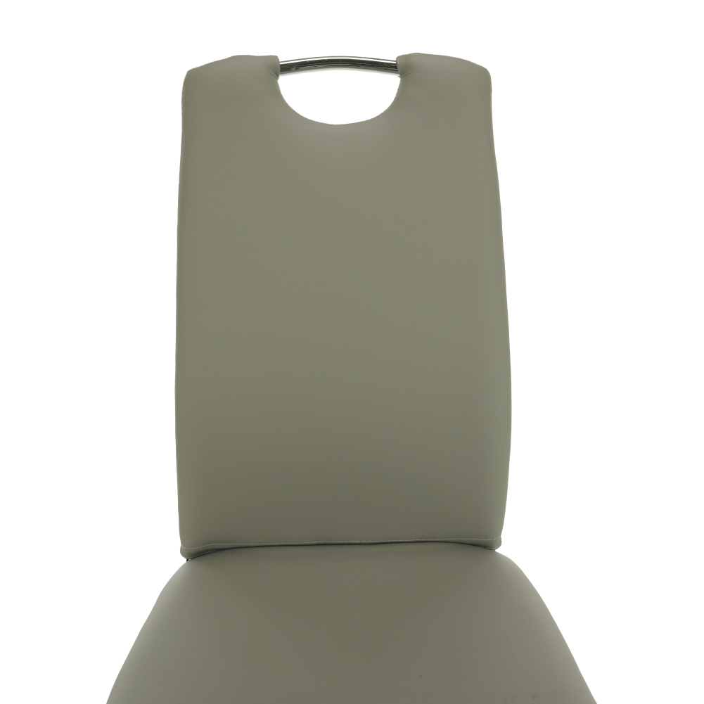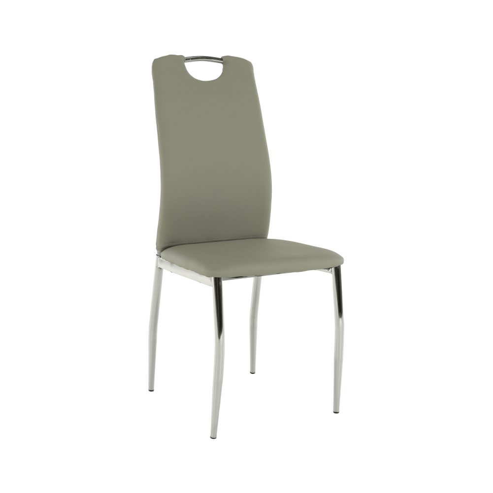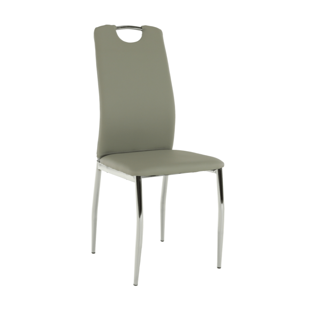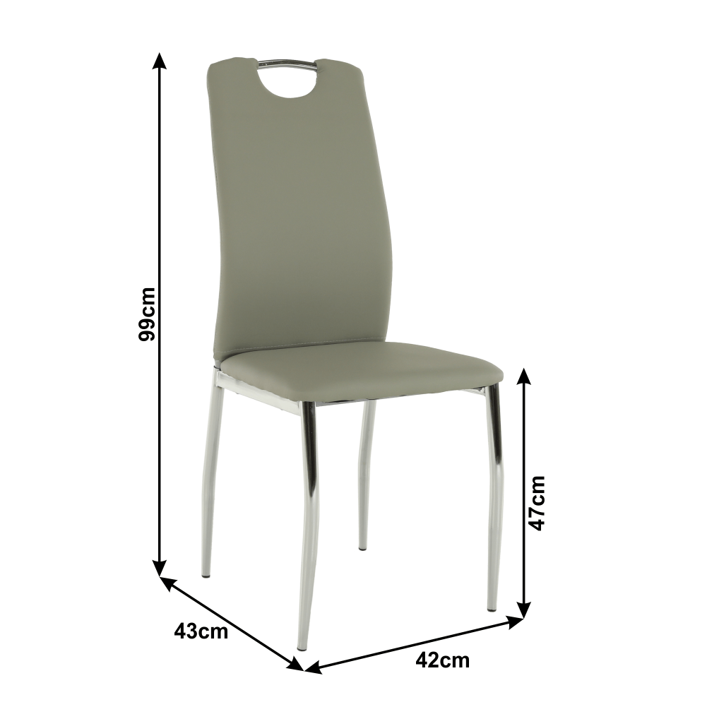 Étkezőszék ERVINA Anyag: textilbőr + króm A szövet kopásállósága: 100 000 Martindale Színváltozat: szürke textilbőr Méretek (SzéxMéxMa): 42x43x99cm Ülőrész magassága: 47cm Teherbírás: 110 kg Szállítás szétszerelve