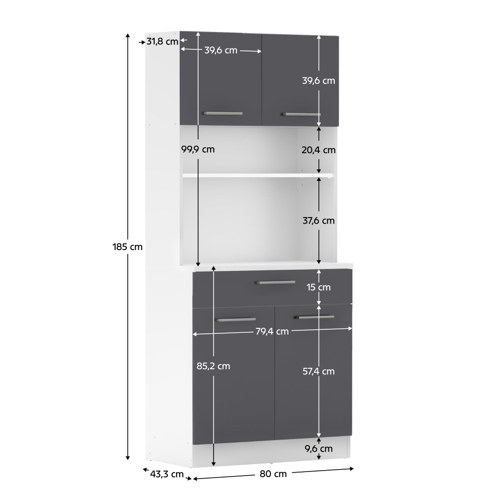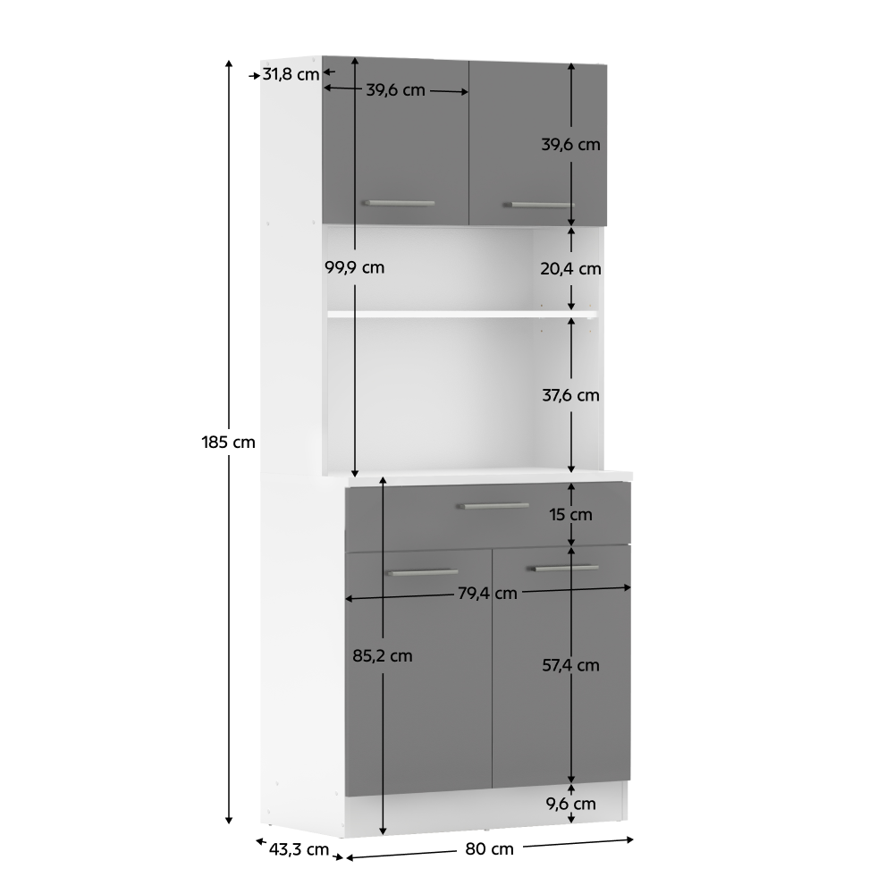 Méretek (SzxMéxMa): 80x43,3x185 cm