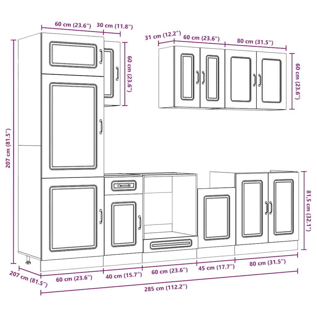 Ez a 8 darabos konyhaszekrény-garnitúra elegáns kialakításával optimalizálja a konyhateret, és bőséges tárolóhelyet biztosít személyes tárgyaidnak!