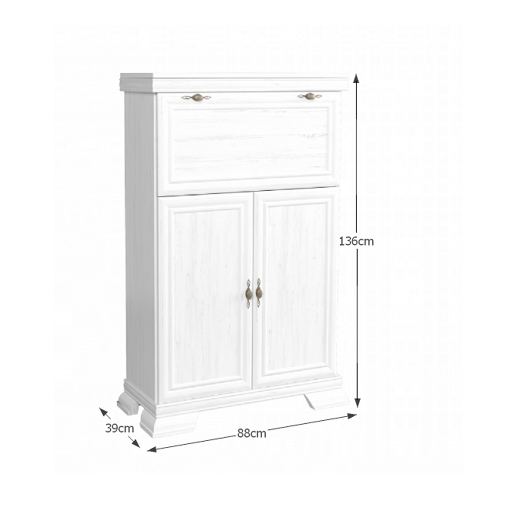 Bárszekrény, KORA KK5 Színváltozat: andersen fenyő Anyag: laminált DTD, MDF, fém. Méretek (SzéxMéxMa): 88x39x136 cm Az alsó tér magassága a padlótól: 10,5 cm