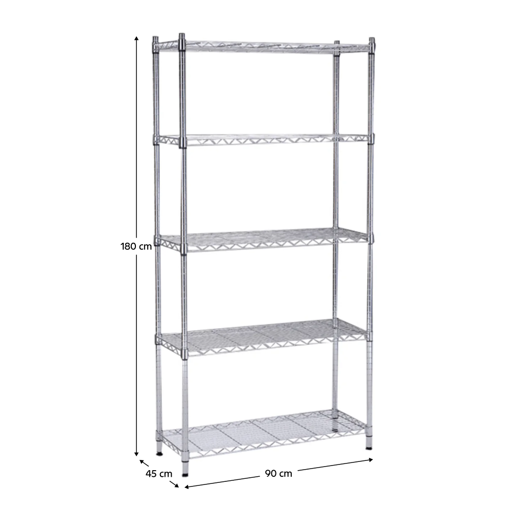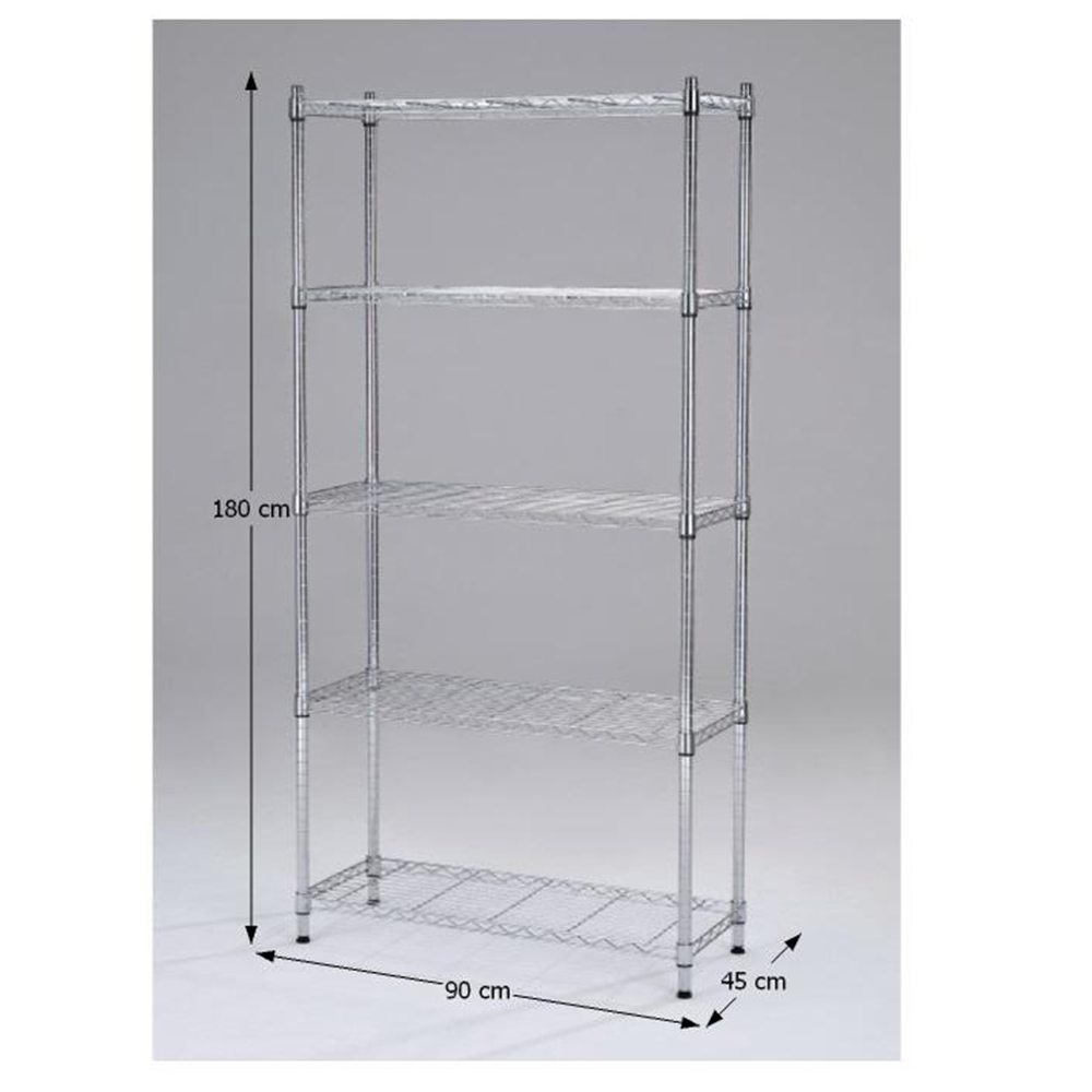 Praktikus fém 5-polcos könyvespolc Változat: króm Méretek (SzéxMéxMa): 90x45x180 cm Teherbírás/ polc: 40 kg
