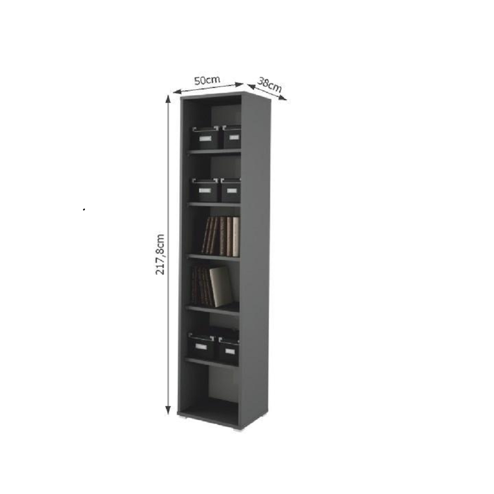 Magas könyvespolc RIOMA NEW TYP 02 Színváltozat: grafit Anyag: laminált DTD Méretek (SzéxMéxMa): 50x38x217,8 cm Szállítás szétszerelve.