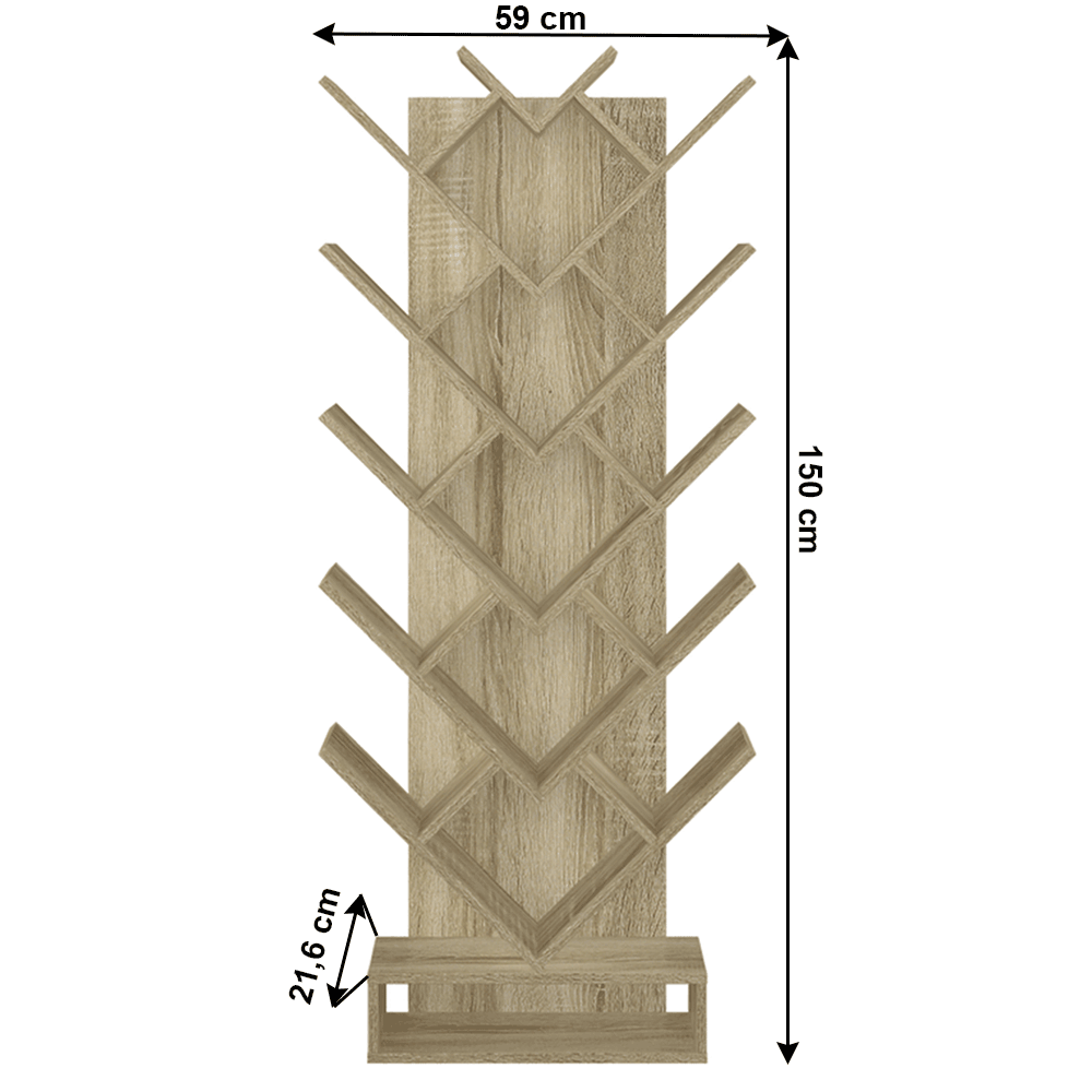 Anyag: DTD Szín: szürkésbarna tölgy Méretek (SzéxMéxMa): 59x21,6x150 cm Anyag vastagsága: 15 mm Vonzó dizájn Szokatlan módon elrendezett polcok Többfunkciós Bontásban szállítva