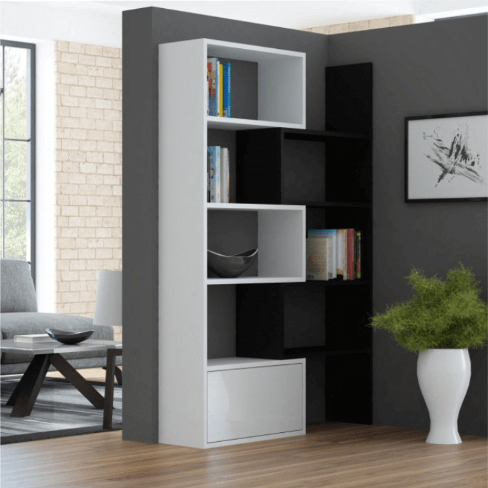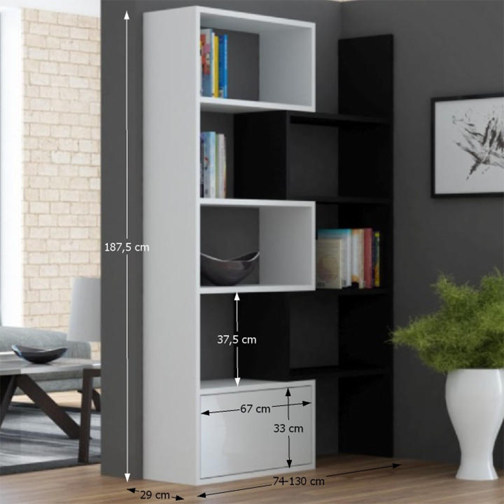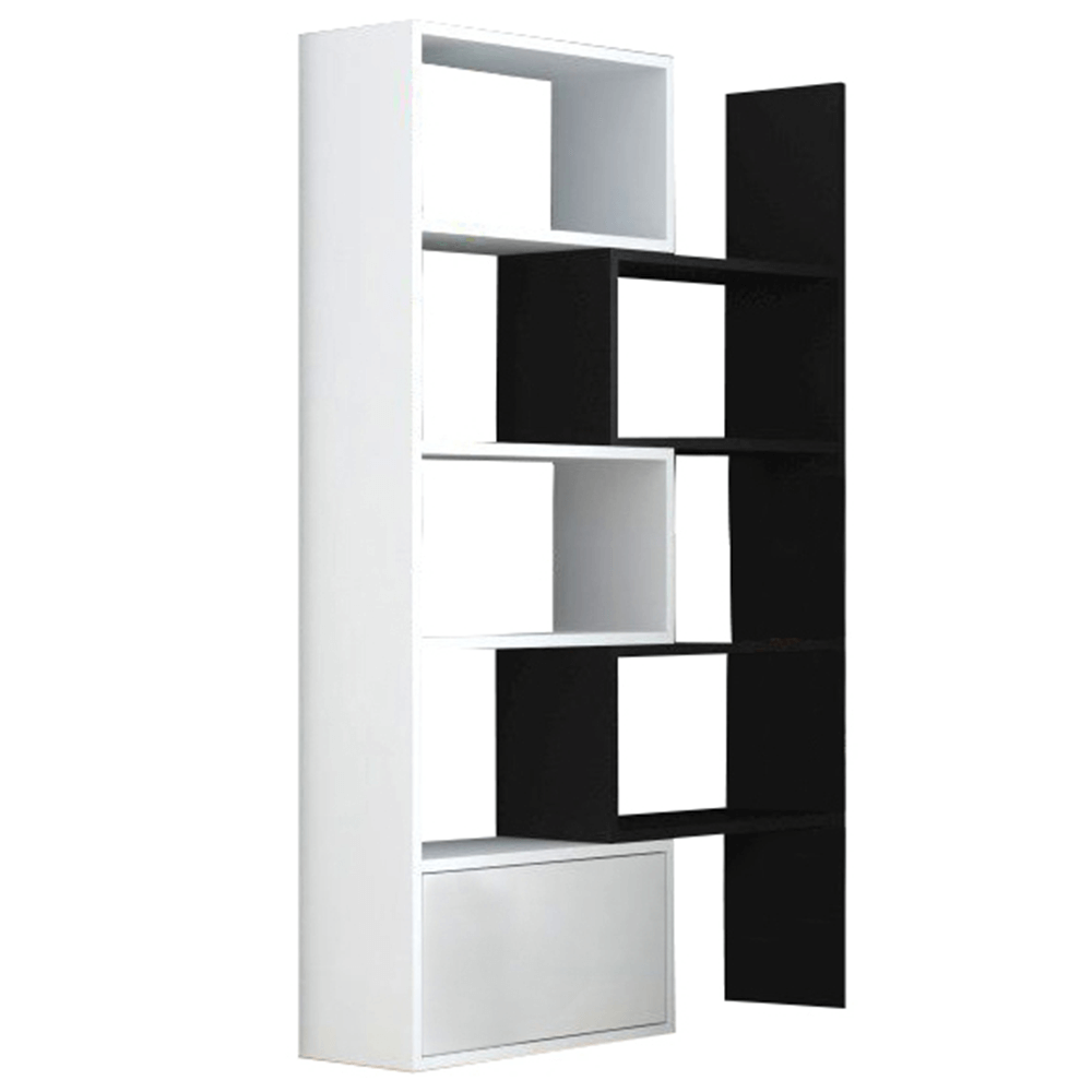 Többfunkciós könyvespolc, fehér/fekete, ASTA