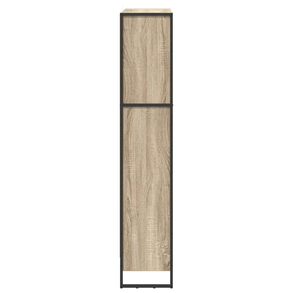 Mérnöki fa: Magas színvonalú mérnöki fából készült, ez a könyves szekrény tartós és elegáns. Az anyag garantálja a robusztus, de könnyű felépítést, ami praktikus és jól mutat bármilyen belső térben. A fa sima felülete jól illik a különféle dekorációs stílusokhoz. Acél alkatrészek: Robusztus acél lábakkal van felszerelve, így garantálja a stabilitást, még sok könyv és dísztárgy mellett is. Ez a dizájn adottság nemcsak a szekrény szilárdságát növeli, hanem ipari hangulatot is ad a modern belső tereknek. Funkcionális dizájn: A téglalap alak magas tárolókapacitást biztosít, miközben karcsú, falhoz illeszkedő profilt tart. Legyen szó könyvekről, családi albumokról vagy dísztárgyakról, a részletes tervezés rugalmasságot ad a tárolási lehetőségek között. Ez a rugalmasság alkalmazkodik az eltérő igényekhez és funkcionális követelményekhez. Összeszerelési követelmények: A szekrény összeszereléséhez két ember és csavarhúzó szükséges a stabil tartás érdekében. Ez a részletes specifikáció bemutatja a tervezés és a funkcionalitás iránti figyelmet, így a könyves szekrény megbízható kiegészítője bármely szobának. Beltéri használat: Tökéletes beltéri használatra, a nappalit rendezett szentéllyé alakítja. Ez a darab a praktikát keresőknek készült, anélkül, hogy a stílust feláldoznák, és a tér optimalizálása a fő szempont. Ideális a rendetlenségek kezelésére és a funkcionalitás, valamint az esztétika elősegítésére.- Szín: Sonoma