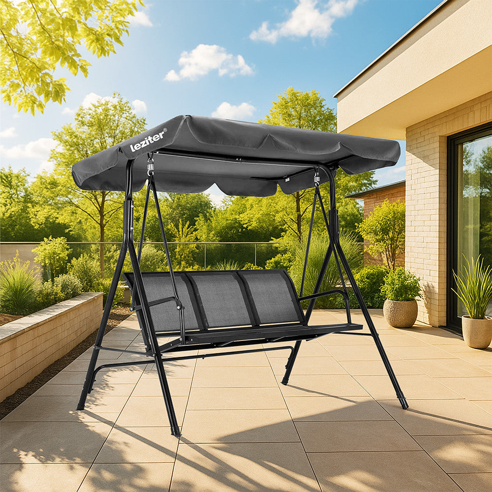 A Como kerti hintaágyat úgy tervezték, hogy hosszú időn át megbízható pihenőhelyed legyen. Az erős acélváz, a strapabíró szerkezeti elemek és a minőségi anyaghasználat garantálják, hogy stabilitása évek múltán sem hagy cserben. A poliészter tető védi a bőrödet a napsugárzástól, így a legmelegebb nyári napokon is zavartalanul élvezheted a kinti pihenést. A részletekre való odafigyelés — a masszív szerkezet és a gondos tervezés — biztosítja, hogy a hintaágy hosszú távon is esztétikus és funkcionális maradjon.