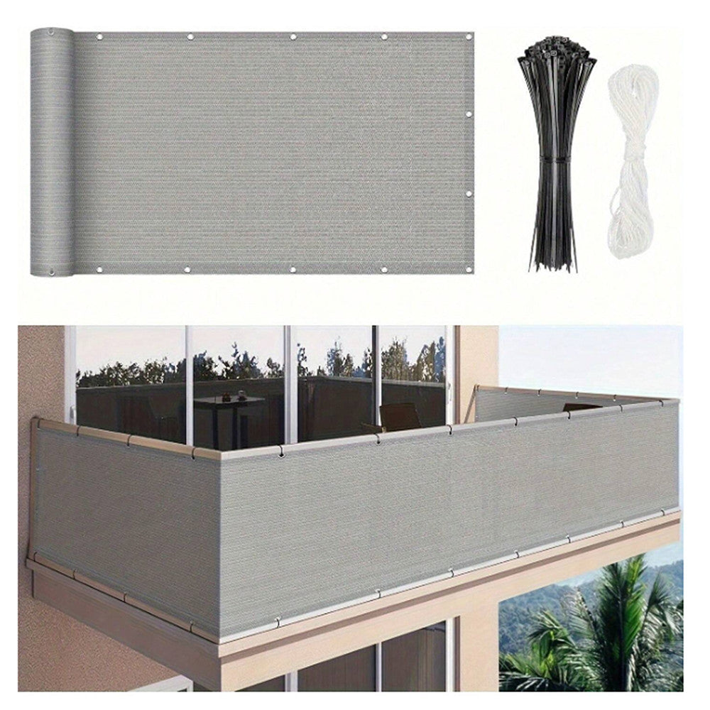 Az árnyékoló praktikus mérete (100×700 cm) ideális választás erkélyekhez, teraszokhoz és kerítésekhez. A rozsdamentes acél fémgyűrűk segítségével gyorsan és biztonságosan rögzítheted a csomagban található rögzítő elemekkel. Akár egyedül is könnyen felhelyezhető, és költözés vagy erkély átrendezés esetén egyszerűen leszerelhető és áthelyezhető.