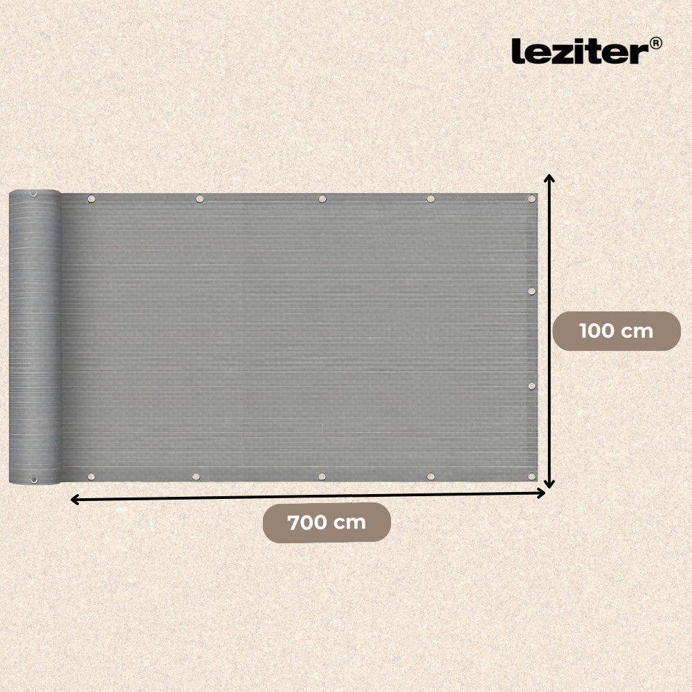 A 100×700 cm méretű árnyékoló ideális választás erkélyekhez, teraszokhoz és kerítésekhez, akár panellakásokhoz, akár családi házakhoz. szürke színe harmonikusan illeszkedik bármilyen környezetbe, így esztétikailag is idális megoldás.