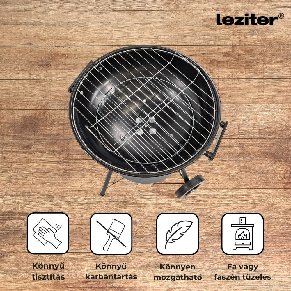A Leziter faszenes grill egyszerűen összeszerelhető, így rövid idő alatt használatra kész. A hamugyűjtő és a krómozott rács könnyen tisztítható, így a grillezés után minimális erőfeszítéssel rendben tartható.