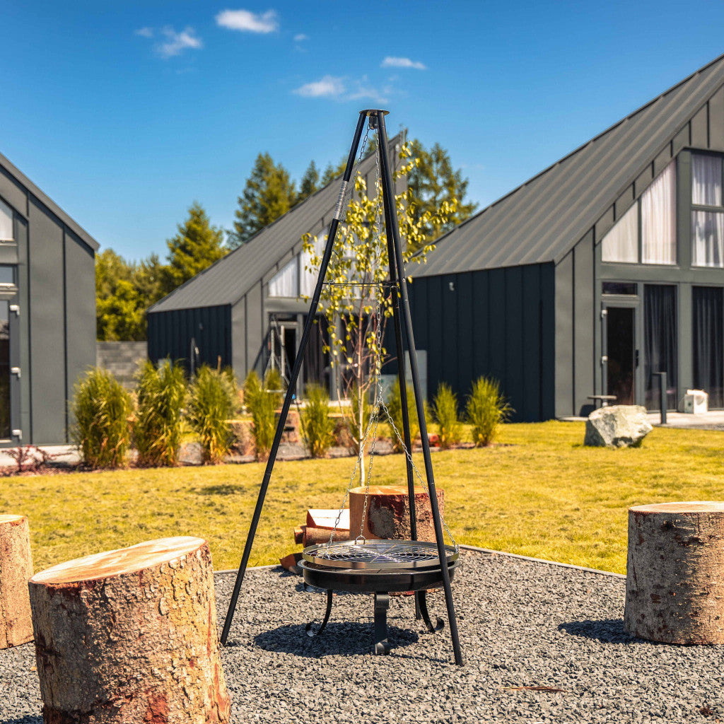 Kerti tűzrakóhely háromlábbal és ráccsal