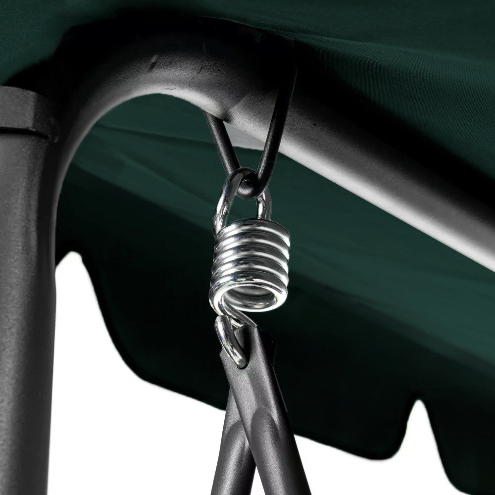 A poliészter tető nem csak a nap káros UV-sugárzása ellen nyújt védelmet, hanem egy kis menedéket is biztosít az enyhébb esőzések során. Az anyaga ellenáll a napfény okozta kifakulásnak, így a hintaágy színe hosszú ideig megőrzi eredeti zöld árnyalatát.
