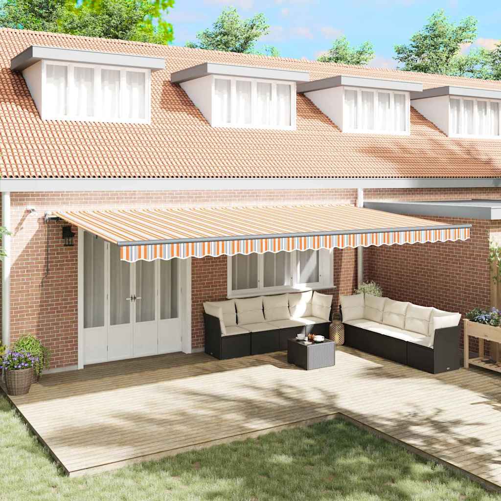 Ez a behúzható napellenző a stílus és a praktikum ötvözete az erkélyedhez. Elegáns dizájnja és trendi csíkos mintázata feldobja a helyedet, miközben árnyékos menedéket nyújt napos napokon. Kifejezetten kültéri használatra lett tervezve, így kényelmesen pihenhetsz az erkélyen anélkül, hogy a nap égető fényétől szenvednél. Plusz, a távirányítóval simán állíthatod az árnyékot, így élvezhető lesz a kültéri időtöltés.