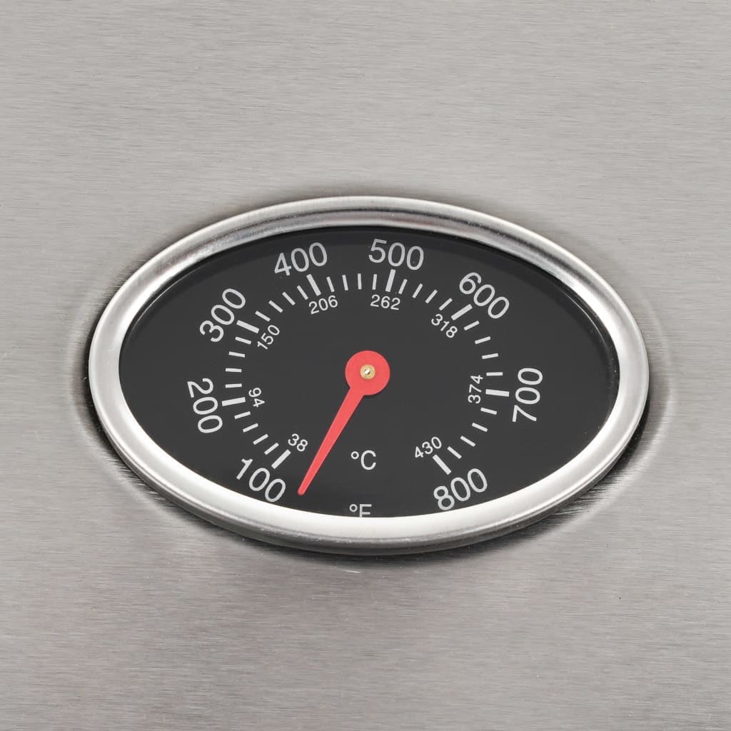 A gáz grillező stílusos és funkcionális kialakítású. 6 gázégővel rendelkezik és egy nagy teherbírású motorháztetővel, beépített hőmérővel, amely pontosan mutatja a főzési hőmérsékletet. Két oldalsó panel extra helyet biztosít a szószok vagy egyéb ételek elkészítéséhez. A cserélhető zsír csepegtető is alaptartozék, ami könnyen tisztítható. Nagy teherbírású anyagokból készült, így a grillező nagyon tartós. Az alsó tárolódoboz elegendő helyet biztosít más kellékek számára. A 2 erős görgőnek köszönhetően könnyen mozgatható. A grillező gázpalackkal történő összekötéséhez gázcsőre és megfelelő nyomásszabályozóra van szükség, melyek nem képezik a szett részét.