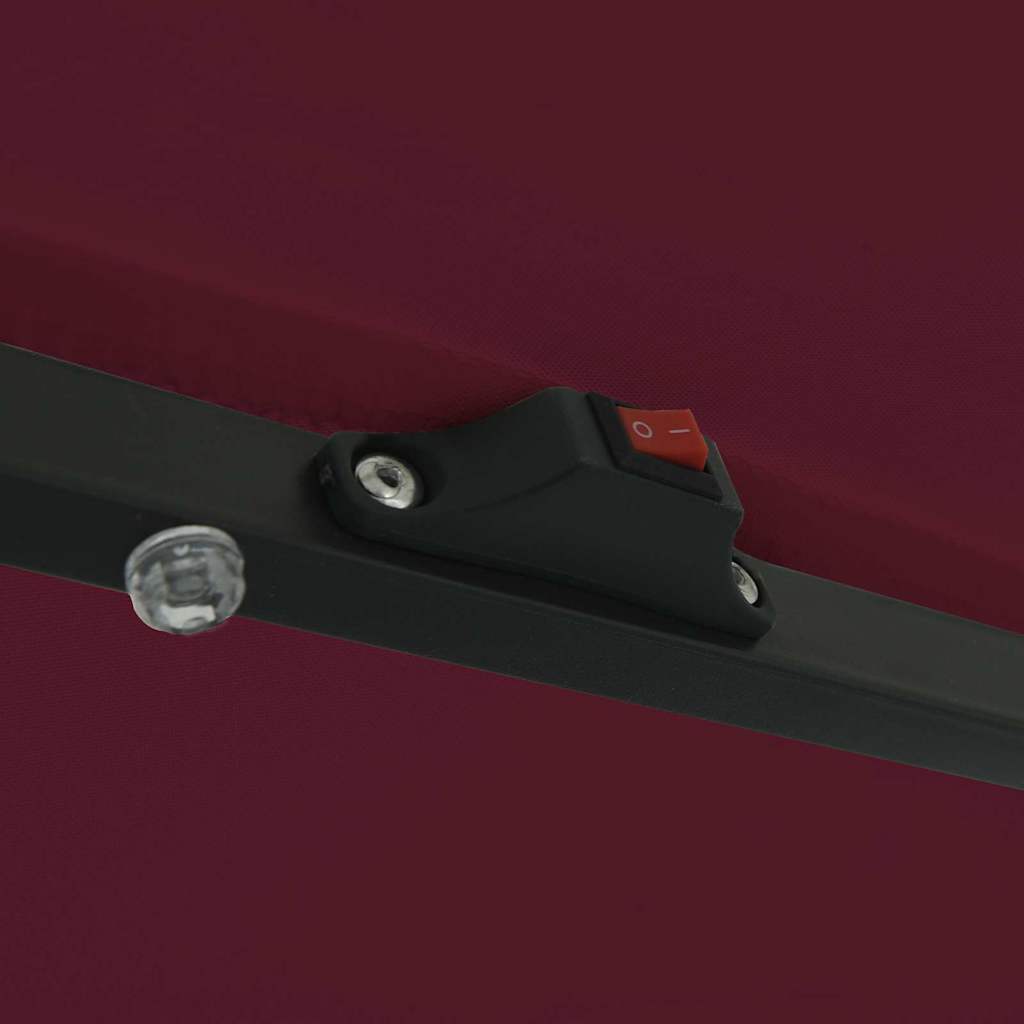 • Beépített LED Világítás: Az esték hangulatához hozzáadott kényelem érdekében a napernyő rugalmas LED szalaglámpákat tartalmaz. Ezek a szalaglámpák könnyen csatlakoztathatók, és lágy, hívogató fényt nyújtanak, amely fokozza az éjjeli kertipartik vagy intim vacsorák légkörét. Ez a beépített világítási megoldás praktikus, kiküszöbölve a külön extra kültéri világítás szükségességét.