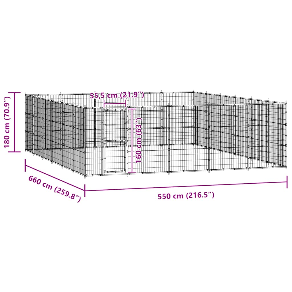 Ez a kutyakennel bőséges helyet kínál a mozgáshoz, a hálós borítás pedig segít megakadályozni a kutyák szökését, illetve megelőzni a váratlan baleseteket, miközben lehetővé teszik a szellőzést. Robusztus porszórt acélszerkezetének köszönhetően ez a kiváló minőségű kutyakennel strapabíró és hosszú időn át használható. A zsanéros ajtó lelakatolható, így extra védelmet és biztonságot garantál kutyáinak.