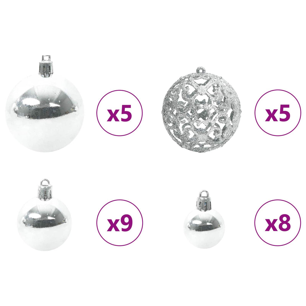 PVC és acél felépítés: PVC-ből és acélból készült, ez a műanyag fa robusztus szerkezettel bír, ami tartós a szezon alatt. A kopásálló anyagok biztosítják a hosszú élettartamot, míg az acél állvány kiváló stabilitást ad, és csak egy csavarhúzóval könnyen összeállítható. Energiatakarékos LED fények: A fa LED fényfüzérei energiatakarékosak és változatos világítási mintákkal működnek. Nyolc különböző villogási módjukkal fényeik bonyolult mintákat alkotnak, élénk fényjátékot biztosítva minden ünnepi dekorációnak. Kényelmes USB tápegység: A fa innovatív USB csatlakozása rugalmas energiaellátást kínál, egyszerűvé téve a használatot, nem igényel hagyományos aljzatot. Hordozható akkumulátorhoz vagy bármely kompatibilis eszközhöz könnyen csatlakoztatható, így zökkenőmentesen telepítheted. Stílusos modern dizájn: A kúpos forma és modern tervezési elemek stílusos kiegészítővé teszik ezt a fát otthonodban vagy védett kültéri helyeken. Elegáns megjelenése simán illeszkedik minimalista vagy kortárs berendezésekhez, fokozva bármely szezonális dekoráció vizuális vonzerejét. Könnyű összeszerelés és karbantartás: Az egyszerű dizájn miatt a fa összeszerelése megkönnyített. Csak egy csavarhúzóra és egy segítőre van szükség, hogy gyorsan beállíthass. A gondozási utasítások követésével biztosíthatod, hogy a fa évről évre a karácsonyi dekoráció alapelem maradjon.- Szín: Fehér