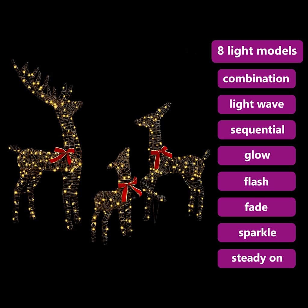 Ez a rénszarvas család szett a karácsonyi dekorációid felfrissítésére készült, modern stílusban, amely a egyszerűséget és funkciót ötvözi. A szett három 3D-s rénszarvas figurát tartalmaz, mindegyik meleg fehér LED csíklámpákkal, amik kellemes ünnepi hangulatot varázsolnak. Ez a kedves szett tükrözi a modern dizájn eleganciáját, és biztosítja, hogy feldobja a karácsonyi dekorációd.